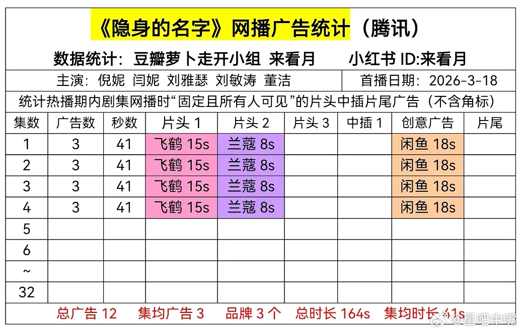 倪妮 闫妮隐身的名字开播 首日网播广告数:首更4集,开局3广!(预测正确)