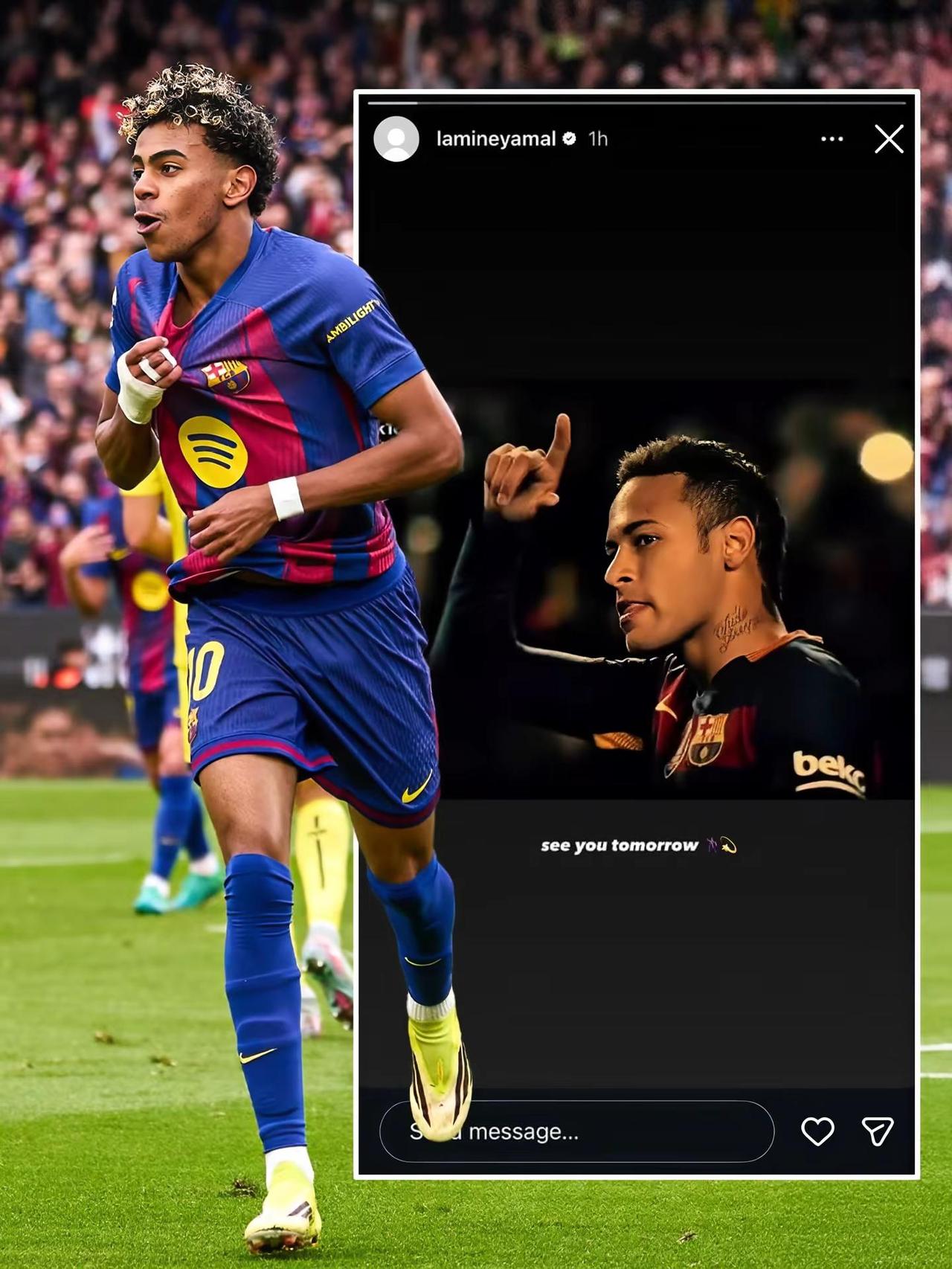 巴萨和纽卡的欧冠次回合,赛前亚马尔在自己的Instagram快拍里,分享了一段偶像内马尔的高光集锦!说真的,亚马尔对内马尔的崇拜从来都毫不掩饰,是实打实的“头号迷弟”。就看这场回到诺坎普的决战,亚马尔能不能复刻偶像的魔力,像当年的内马尔一样,带着巴萨拿下比赛,稳稳锁定欧冠八强的门票!内马尔 亚马尔