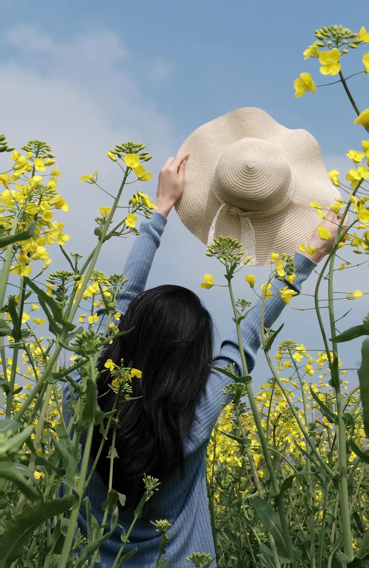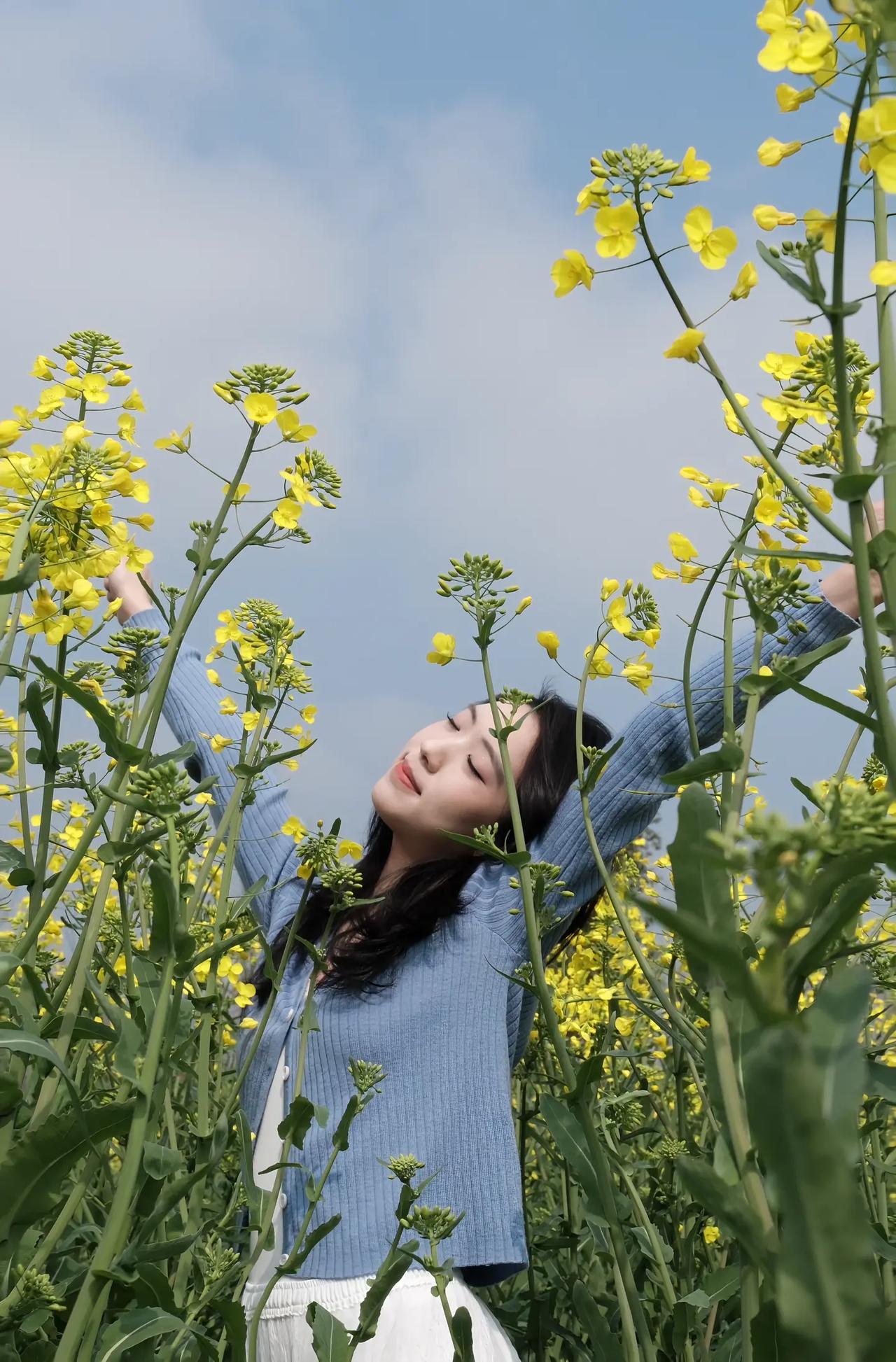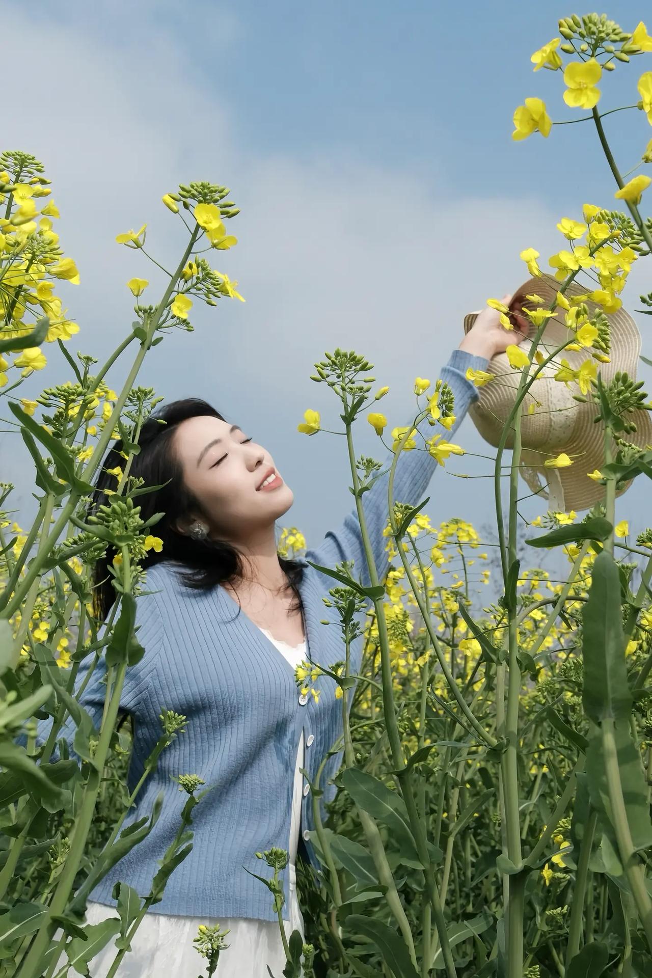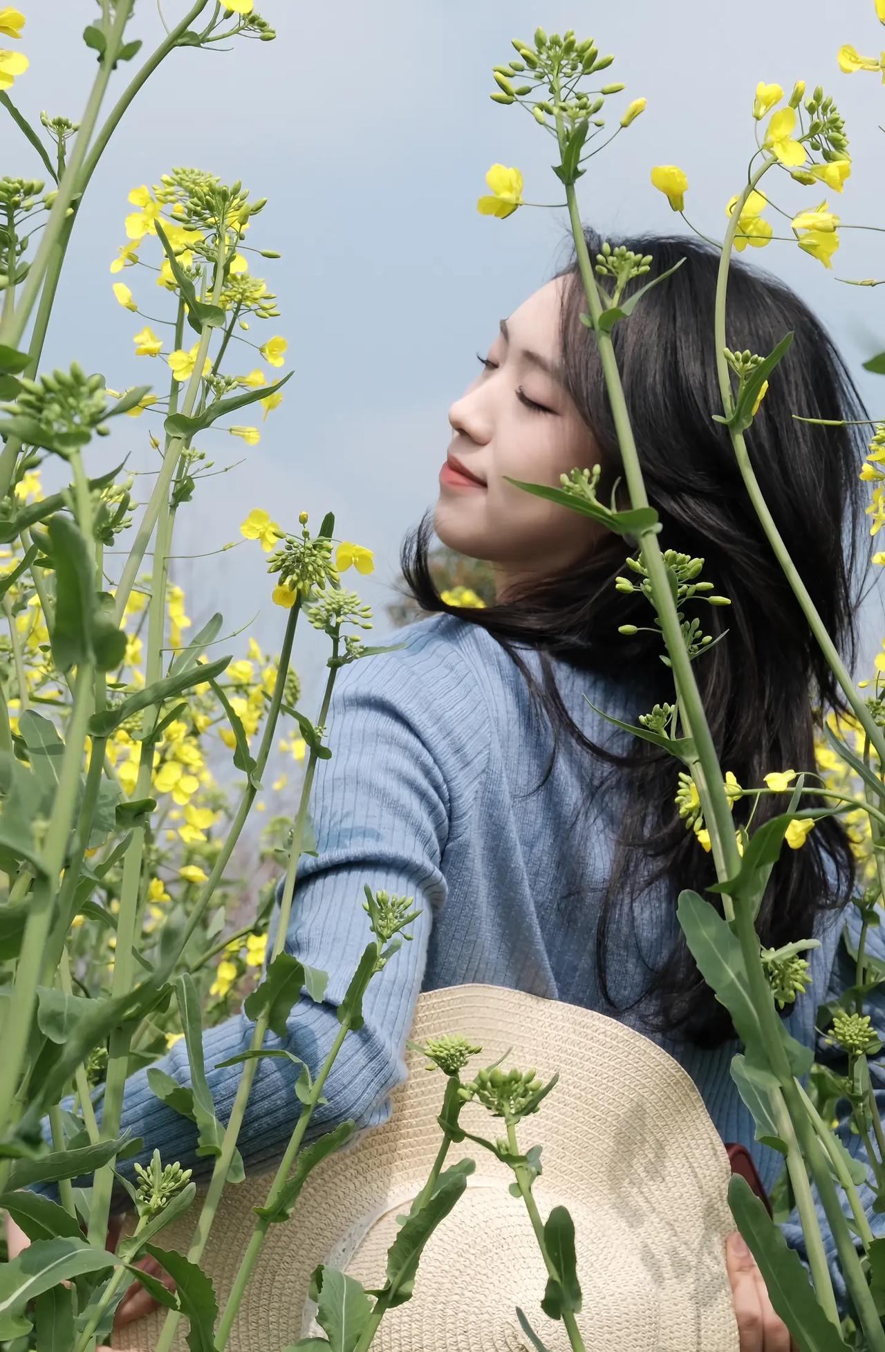 《晴郊闲坐》晴光漫洒碧芳丛,裙裾轻沾碎蕊风。云鬓垂肩凝晓露,蓝衫贴体衬娇