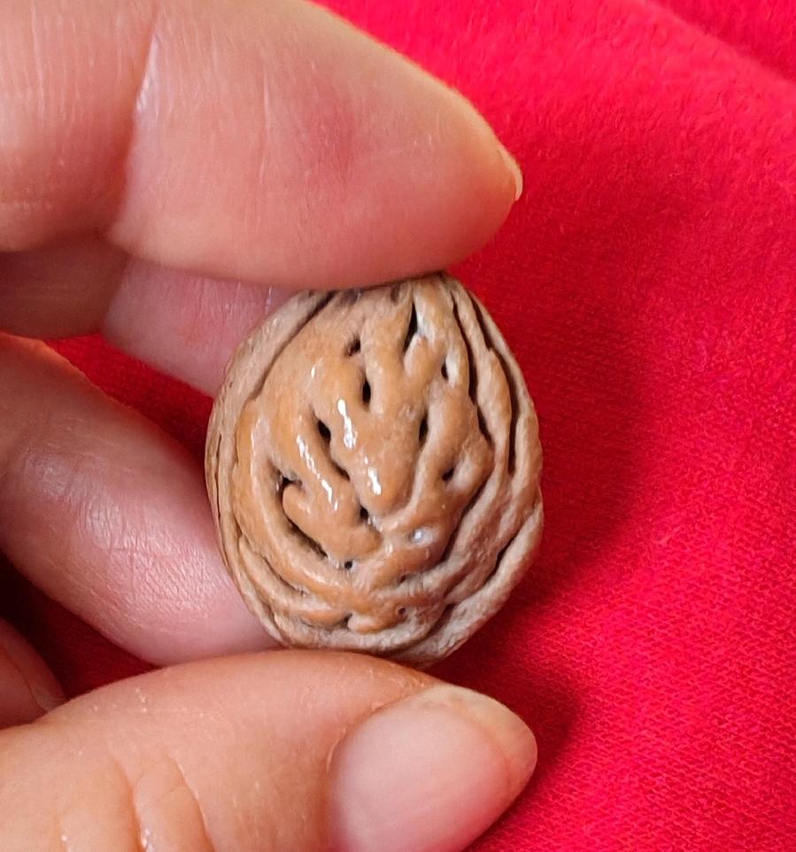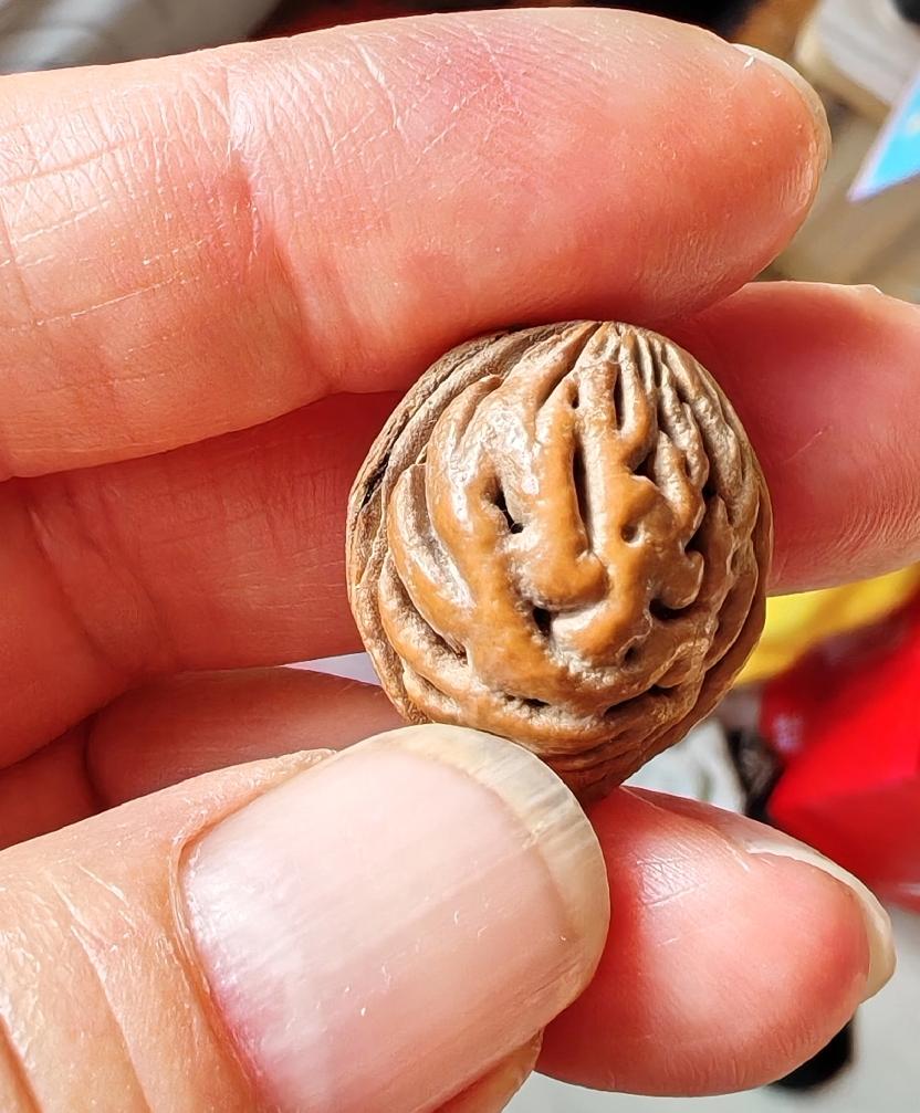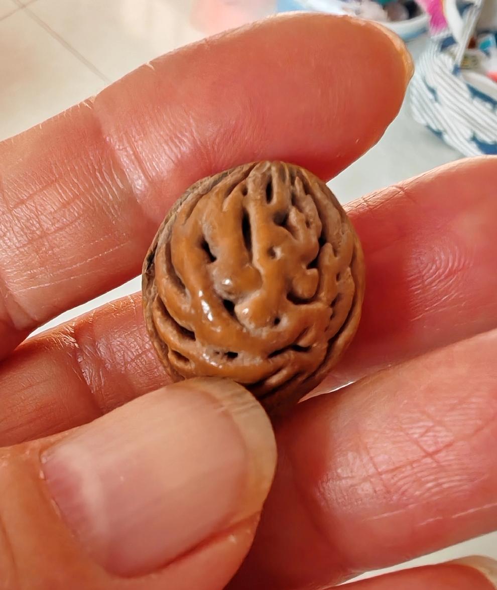 这两枚桃核也很独特,像一种动物的脸谱。 请仔细观察一下,是像哪种动物呢? 每个人的眼中的视象是不同的,桃核之美也在于此,让我们来发现吧! 如果哪位朋友与我看到的是同一种动物的脸,那就很有缘了。 如果正巧你也喜欢其中一枚,那我会送给你哟! 看出来要留言噢,第一个与我看的一样的,其中一枚是你的了!