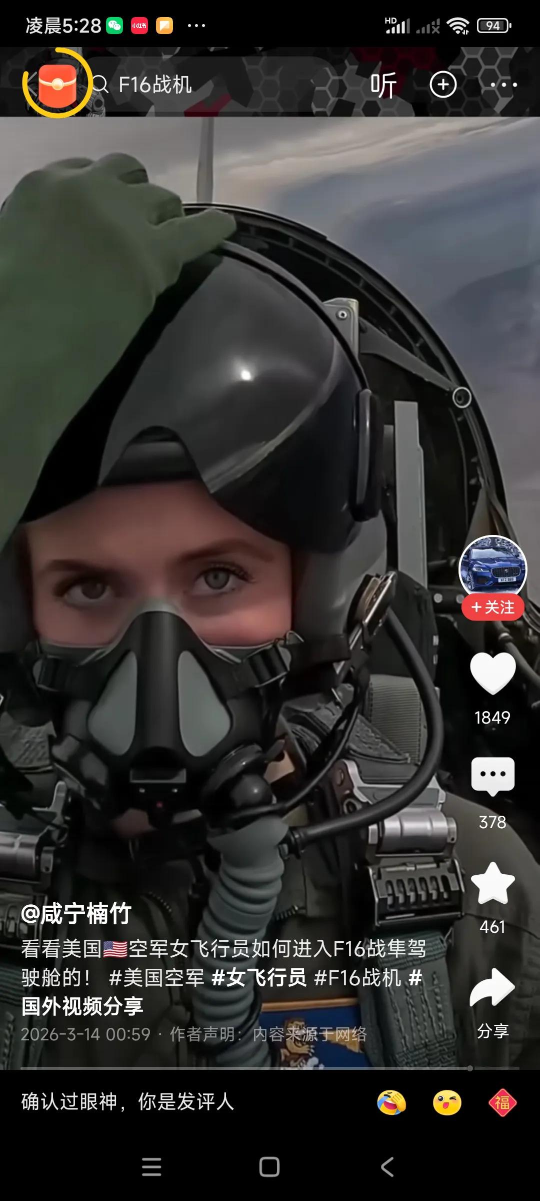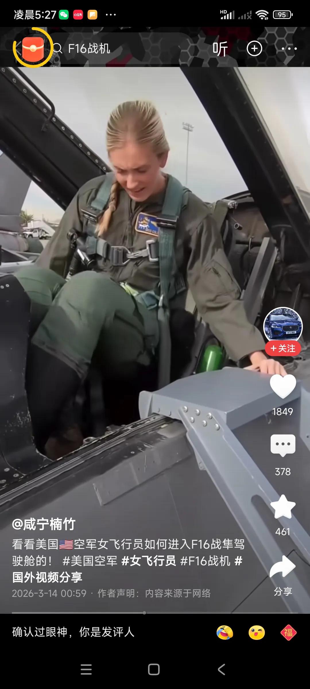 美国女兵可以留长发啊,,,还可以驾驶F16战斗机,非常自信,很放松,,, 感觉战斗机内部空间很拥挤,这两女兵刚好很苗条,坐在里面刚刚好,像量身定做的,[捂脸][捂脸] 如果身材太胖,太高的人,坐在里面太拥挤了,会崩溃的,,,, 战争无情,这么美的女兵操作的可是一个杀人机器,手指一按,导弹就发射出去了,可以杀死几百人,[捂脸][捂脸][捂脸] 所以,只要上了战场,各为其主,都是敌人了,,,
