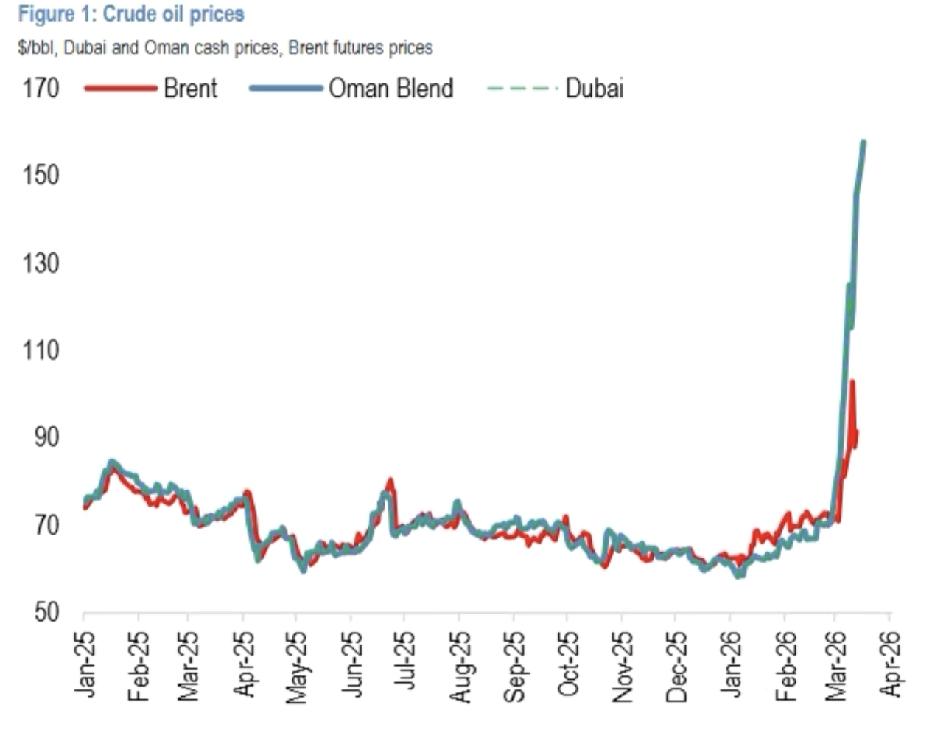 油市又有大情况!迪拜和阿曼原油现货价都冲到155美元/桶了,布油和美油却没啥大动静,还在100美元附近晃悠。究其原因,是伊朗油田遭袭了,这可是大事啊,伊朗肯定不会善罢甘休,都发誓要报复了。这样一来,市场对原油供应的担忧就上来了,中东那边供应一吃紧,迪拜和阿曼原油价格就坐火箭似的往上涨。