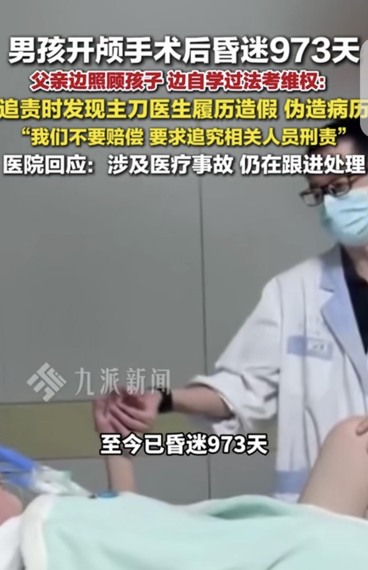 江苏无锡,有个16岁男孩开颅手术后,一昏迷就是973天。谁也没料到,孩子的父亲龚先生,没只顾着悲伤,反倒做了个让人意外的决定。他一边没日没夜照顾昏迷的儿子,一边重新拿起书本自学,最后还顺利通过了法考。原来,他在照顾孩子、查找资料的过程中,发现给儿子主刀的医生履历是假的,卫健委介入调查后,更多让人震惊的真相,也慢慢被揭开了。 无锡那家医院的病房里,监护仪的数字已经跳了973天。16岁的少年躺在那儿,心跳规律,呼吸平稳,但眼睛再也没睁开过。床边的中年男人手里攥着两样东西:一本翻烂的法考教材,一叠新旧对照的病历。2026年3月16日,龚先生毅然做出一个抉择:他摒弃金钱诉求,一心只求立案。在利益与正义之间,他选择了后者。 这事得从2023年7月19日说起。那天孩子脑子出了问题,必须开颅。一家人反复比对许久,最终将目光锁定在医院官网上那位“名校毕业、从业二十载”的权威专家身上,认定其为合适之选。手术很顺利,医生这么说的。但推出来那一刻,人成了植物人。"暂时醒不来",当时医生是这么解释的。谁曾料到,这所谓的“暂时”,一拖便是将近三年时光,往昔以为的短暂,终成漫长岁月。 白天龚先生守在病房,喂饭、擦澡、翻身、记数据。晚上拖着疲惫的身子回家,开始翻病历,越看越不对劲。他顺着医生名字去网上查,好家伙,那份金光闪闪的简历全是假的,名校查无此人,20年经验其实不到10年,连开颅手术的资质都成问题。更狠的在后头。他把自己存的旧病历和医院后来给的新版本一对比,发现37处文字对不上。手术时间、用药剂量以及术后观察记录,均遭人蓄意篡改。每一处关键信息都被暗中操控,仿佛一只无形的手,扰乱了医疗的严谨秩序。 此刻,龚先生恍然大悟,儿子所遭遇之事绝非意外。他心中已然明晰,背后或许另有隐情,绝非偶然所致。为了讨说法,他做了个赌注:自学法律,拿下法考。毕业23年没碰过书的中年人,每天睡不到4小时,白天照顾昏迷的儿子,深夜蹲在医院走廊的板凳上啃那些天书一样的法条。病房墙上贴满了密密麻麻的考点便签,昏暗的灯光下,他一个字一个字地往脑子里塞。 2025年,成绩揭晓之际,令人欣喜不已。所有的努力终获回报,一举通关,顺利达成目标。证书到手那天,这个硬撑了900多天的男人,眼泪哗地就下来了。有人劝他:"算了吧,拿钱带孩子多省事。"但龚先生心里有杆秤,973天的昏迷背后,全是人祸。医生履历弄虚作假,医院审核仿若空中楼阁,形同虚设。而病历更是惨遭篡改,千疮百孔,如被筛子筛过一般,令人痛心。他要的不是赔偿金,是要让这帮人负刑事责任。 按《执业医师法》,伪造学历骗执照的,直接吊销证件,两年内禁止从业,严重的还得坐牢。篡改病历更恶劣,《医疗纠纷条例》和《民法典》都说了,你敢改病历,举证责任就倒过来,默认你有错,想赖都赖不掉。 今年3月16日,龚先生把铁证往刑警队一送,正式报案。对着记者,他把话撂得很直:"我不缺那点钱,我就要个说法。"床上的孩子还在睡,监护仪的数字还在跳。这个父亲用973个日夜换来一张法律资格证,不是为了当律师,是为了让那些藏在白大褂后面的鬼把戏,再也糊弄不了人。 他不知道这条路还要走多久,但至少现在,他手里有了能掀桌子的家伙。