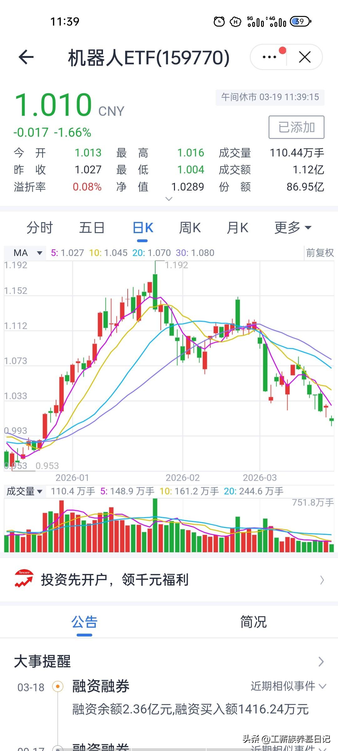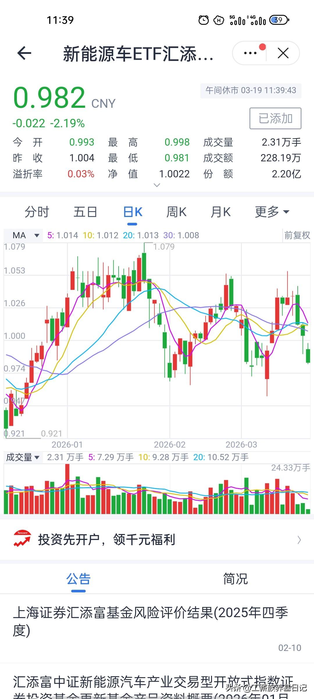 午休摸鱼看基金,今天又白干了! 趁着午休摸鱼结果摸出一肚子气,点开基金一看,手里这仨货又给我脸色看了,纯个人碎碎念,别跟我学哈。 重仓的机器人,直接干到1.010,跌了1.66%,盘中还摸到1.004,把短期那几条线全给踩碎了,量也慢慢放出来,明显还有人在往外跑,就是弱势回调磨心态。 新能源车更绝,直接跌破1块,干到了0.982,跌了2.19%,盘中最低0.981,是今天跌得最狠的那个,这一看就是资金都跑去躲风险了,把新能源给扔了。 为啥跌?我估计还不是因为美联储要议息,市场都怕加息,所以大家先跑为敬,这还是属于情绪性砸盘,跟行业本身没啥关系,中长期逻辑还在。 我现在就躺平不动,等这事儿落地再说,反正也不是第一次熬这种波动了,慢慢耗呗。 你们呢?今天中午绿的还能吃下饭么?是不是也被绿得想骂街?