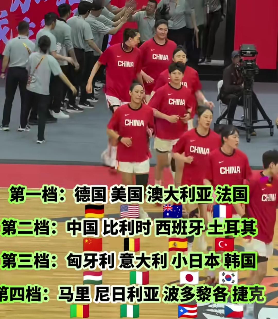 德国女篮世界杯十六强全部产生, 各球队的分档也随之出炉, 中国女篮位于第二档,
