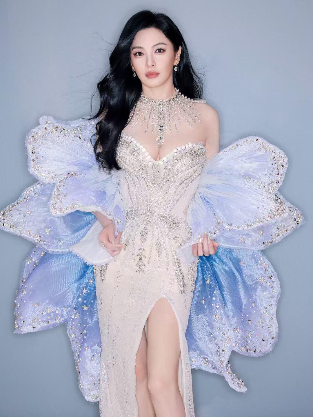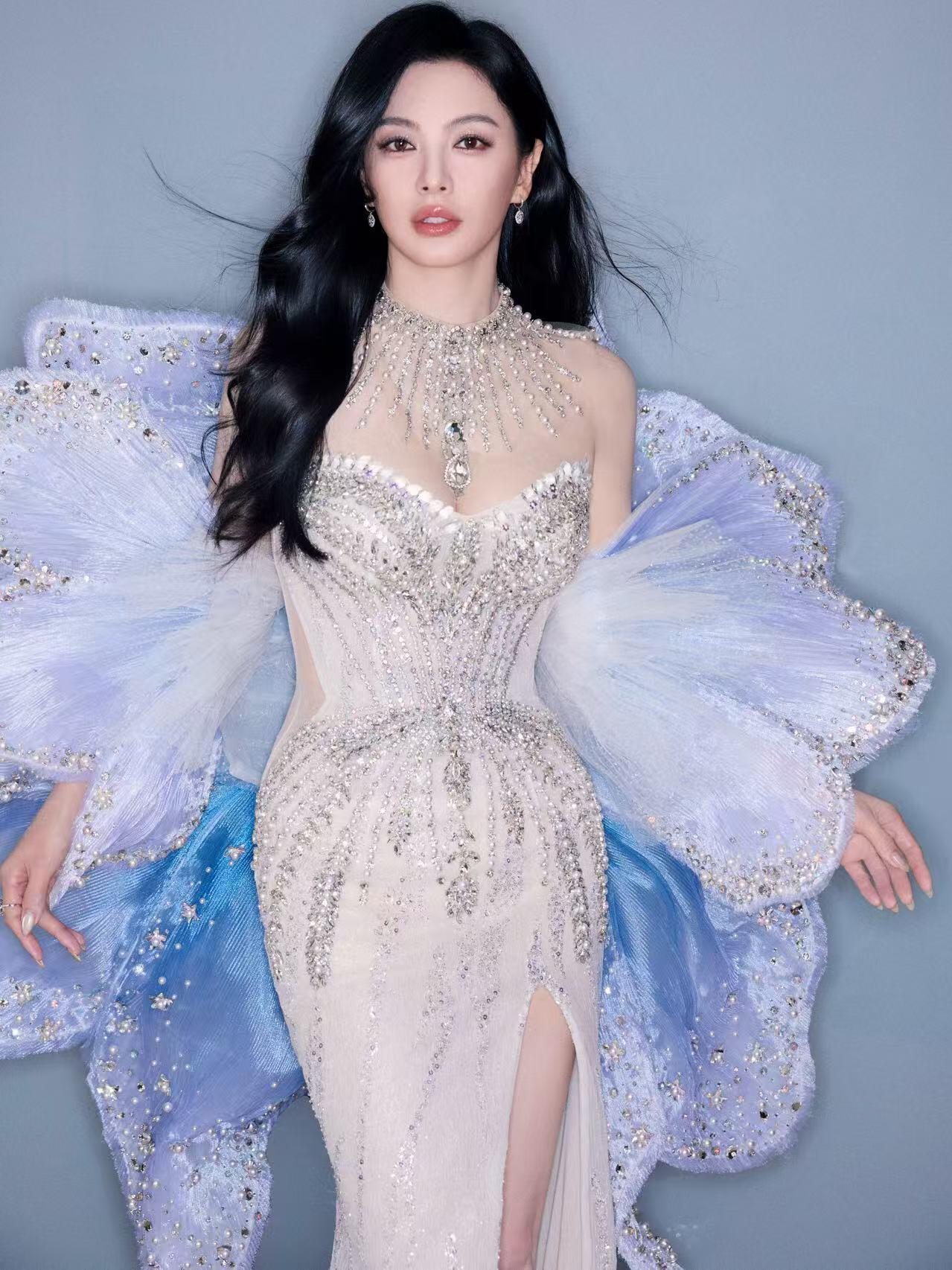 张雨绮 镜头里的光,先吻过颈间的黑 再落进抹胸的深V里 像一场未说出口的风暴 被口红的红,轻轻按住 马尾束起的是人间烟火 卷发散开时,就成了星子的河 黑裙裹着体温,蓝纱载着碎钻 每一步都踩在 “清醒”与“盛放”的交界线 有人在镜头前,把姿态摆成诗 有人在快门后,把心事藏成谜 你看她指尖轻触锁骨 像在抚摸一段 只属于自己的、滚烫的秘密 灯光是温柔的网 把所有棱角都磨成柔光 她抬眼时,世界都慢下来 一半是清醒的冷,一半是燃烧的烫