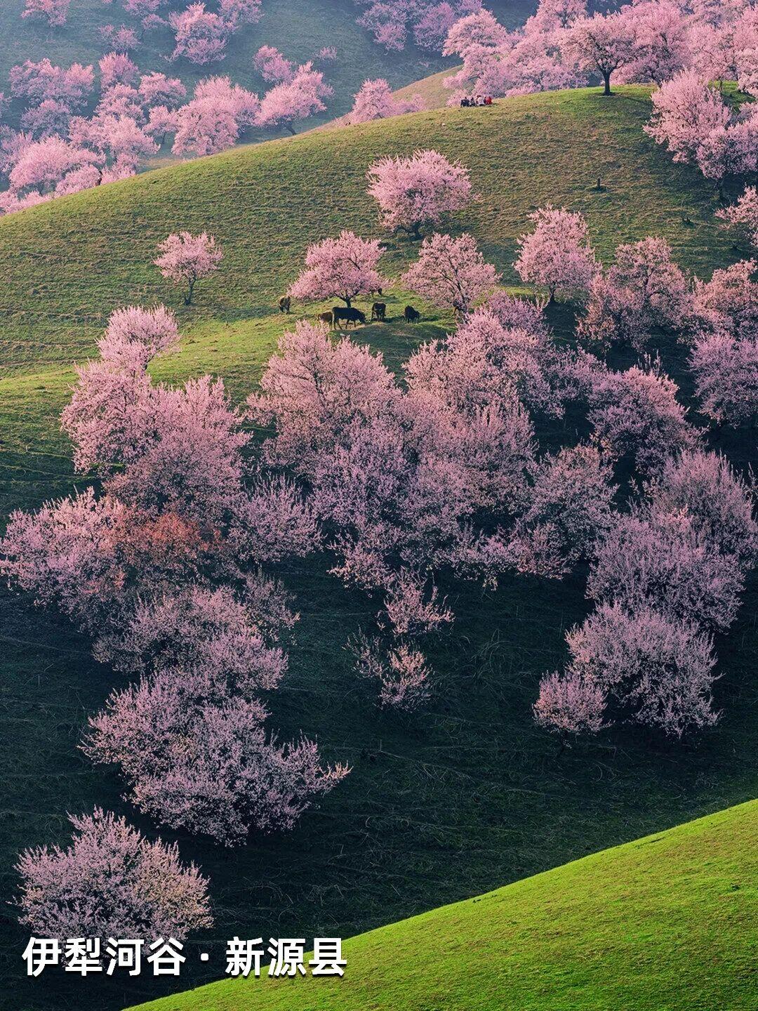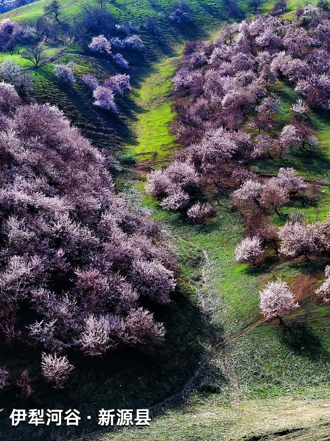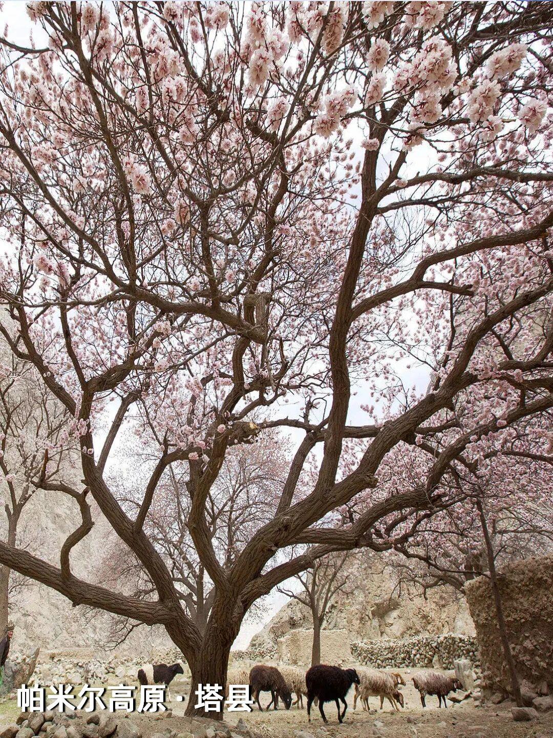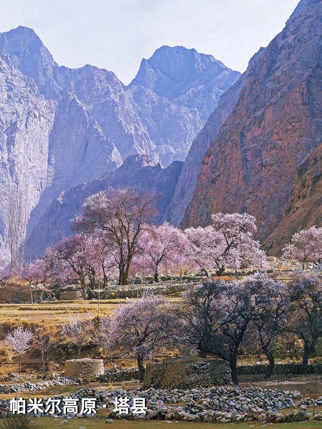 | 新疆杏花,野到极致便是绝色 江南的杏花,开在烟雨中,温柔婉约,像一幅水墨画。可杏树天生喜光耐旱,温润的江南并非它最适宜的家,遥远的新疆才是它真正的故乡——那里阳光充足,气候干燥,杏花开得热烈而自在。 自三月中旬起,春风吹过新疆,杏花渐次染遍这片土地。它们开得肆意、开得张扬,野到极致,便成了人间绝色。 🌸 伊犁河谷|最美野杏花 每年四月,吐尔根的野杏花开满山谷,各色的杏花和翠绿的山坡,勾勒出一幅绝美画卷。之后,大西沟、库尔德宁等地的杏花也将次第绽放。这些杏花不修不剪,天生天养,野性十足,却美得惊心动魄。 地点推荐:新源县那拉提杏花谷、伊宁市海棠路、伊宁县祥和杏园、庆华杏园、托乎拉苏景区、恰普河沟野杏林、霍城县中华福寿山景区、察布查尔锡伯自治县野杏沟、巩留县库尔德宁镇 🌸 帕米尔高原|杏花深处的桃花源 帕米尔高原的杏花不长在景区里,而是开在塔吉克人的土房子旁边,开在石头砌的院墙外,开在赶着牛羊的老人身后。一簇簇盛放的杏花在整个村庄蔓延,每一个村庄都是“杏花村”,仿佛来到了陶渊明笔下的“桃花源”。 地点推荐:塔县大同乡、库科西鲁格乡,阿克陶县塔尔乡 风已暖,花正开, 去新疆,看春天最野的样子。