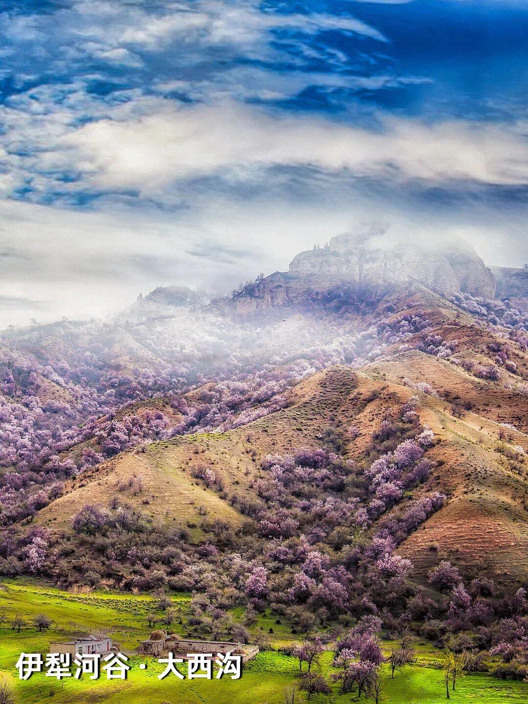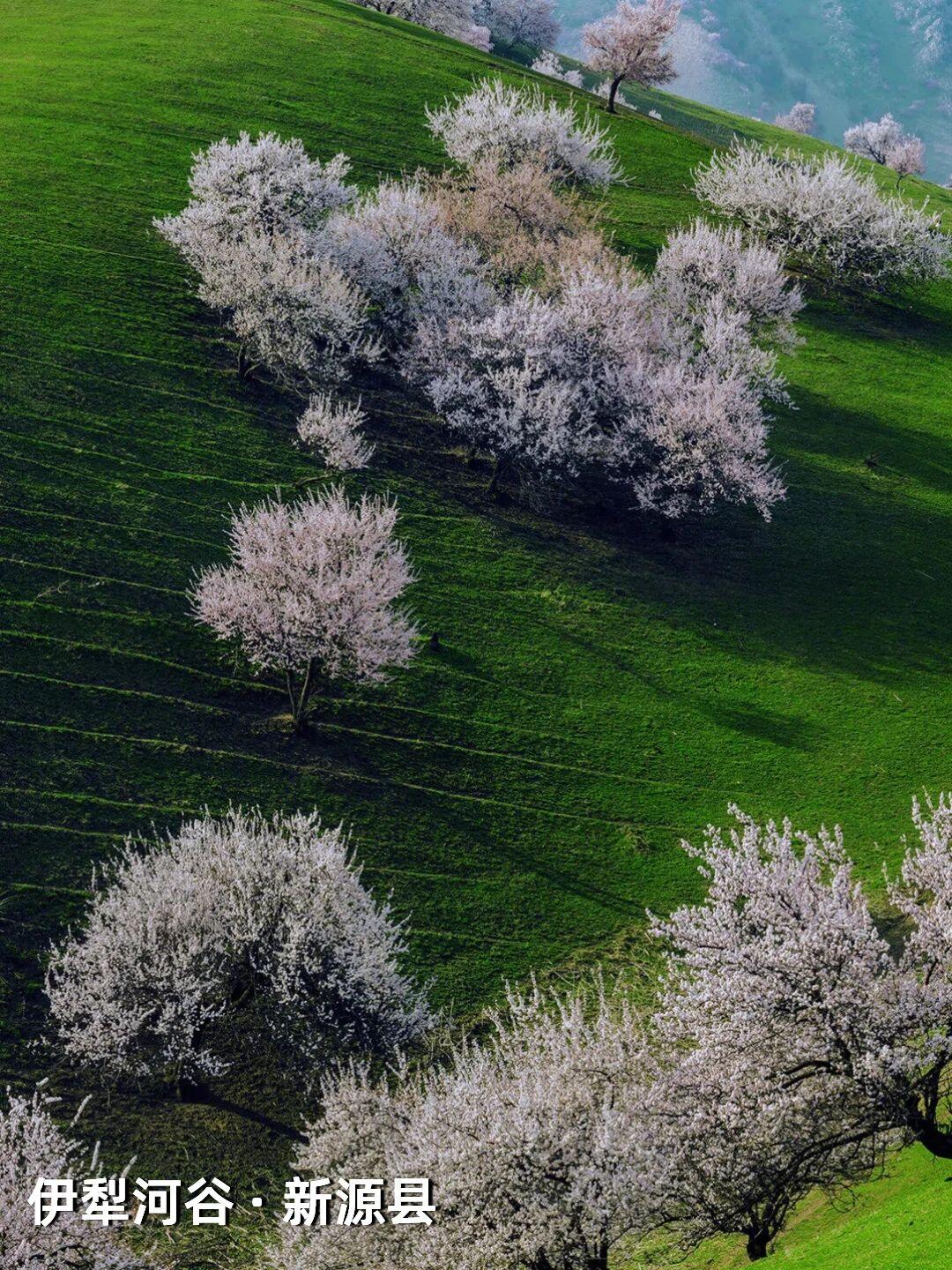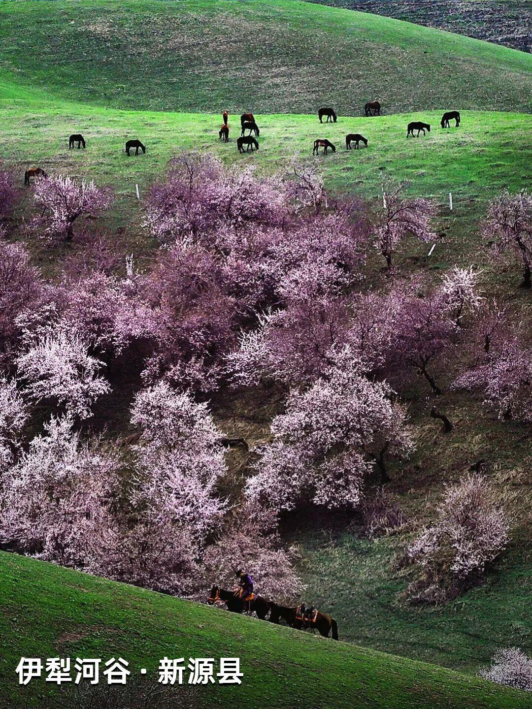 | 新疆杏花,野到极致便是绝色 江南的杏花,开在烟雨中,温柔婉约,像一幅水墨画。可杏树天生喜光耐旱,温润的江南并非它最适宜的家,遥远的新疆才是它真正的故乡——那里阳光充足,气候干燥,杏花开得热烈而自在。 自三月中旬起,春风吹过新疆,杏花渐次染遍这片土地。它们开得肆意、开得张扬,野到极致,便成了人间绝色。 🌸 伊犁河谷|最美野杏花 每年四月,吐尔根的野杏花开满山谷,各色的杏花和翠绿的山坡,勾勒出一幅绝美画卷。之后,大西沟、库尔德宁等地的杏花也将次第绽放。这些杏花不修不剪,天生天养,野性十足,却美得惊心动魄。 地点推荐:新源县那拉提杏花谷、伊宁市海棠路、伊宁县祥和杏园、庆华杏园、托乎拉苏景区、恰普河沟野杏林、霍城县中华福寿山景区、察布查尔锡伯自治县野杏沟、巩留县库尔德宁镇 🌸 帕米尔高原|杏花深处的桃花源 帕米尔高原的杏花不长在景区里,而是开在塔吉克人的土房子旁边,开在石头砌的院墙外,开在赶着牛羊的老人身后。一簇簇盛放的杏花在整个村庄蔓延,每一个村庄都是“杏花村”,仿佛来到了陶渊明笔下的“桃花源”。 地点推荐:塔县大同乡、库科西鲁格乡,阿克陶县塔尔乡 风已暖,花正开, 去新疆,看春天最野的样子。