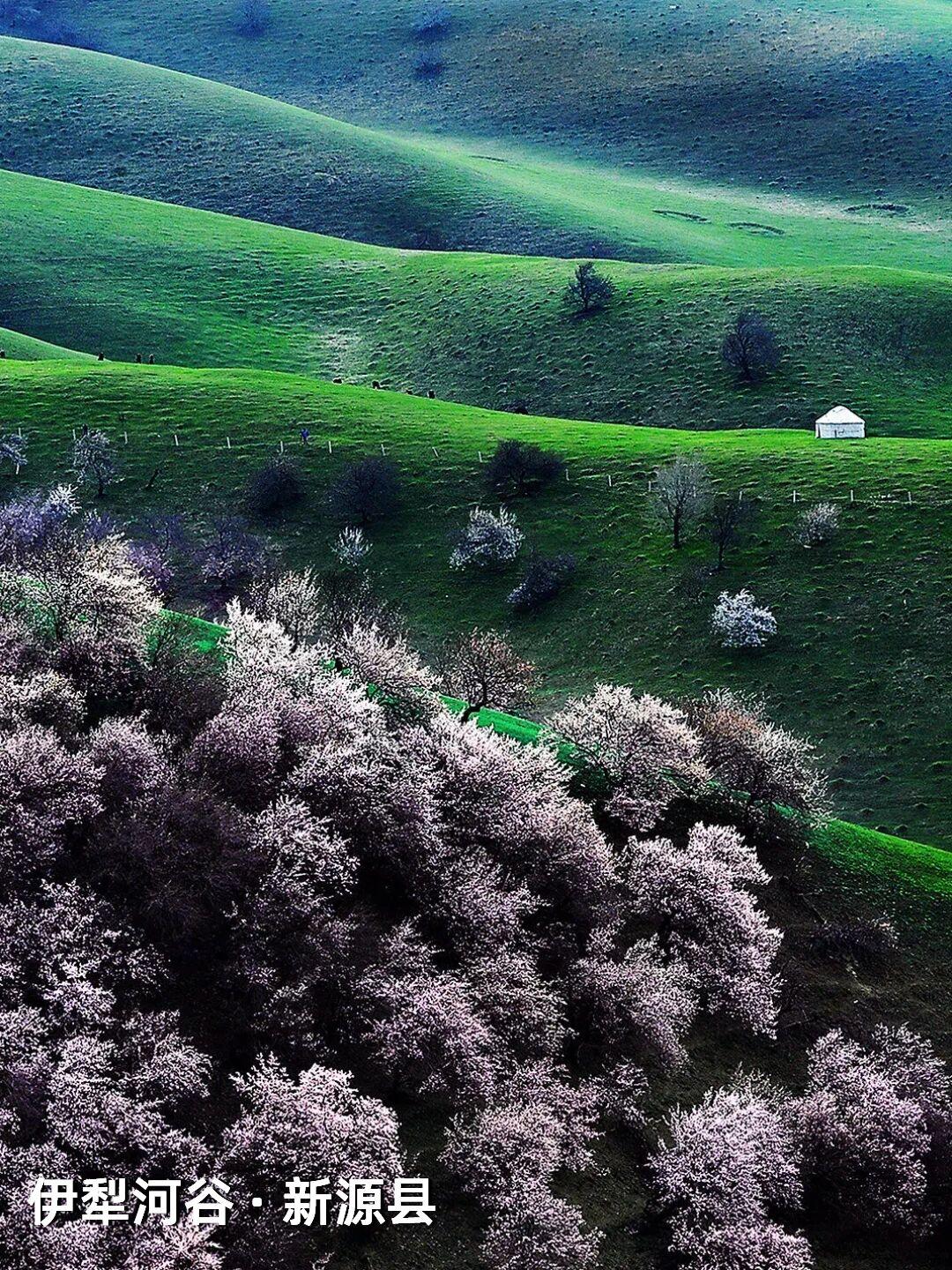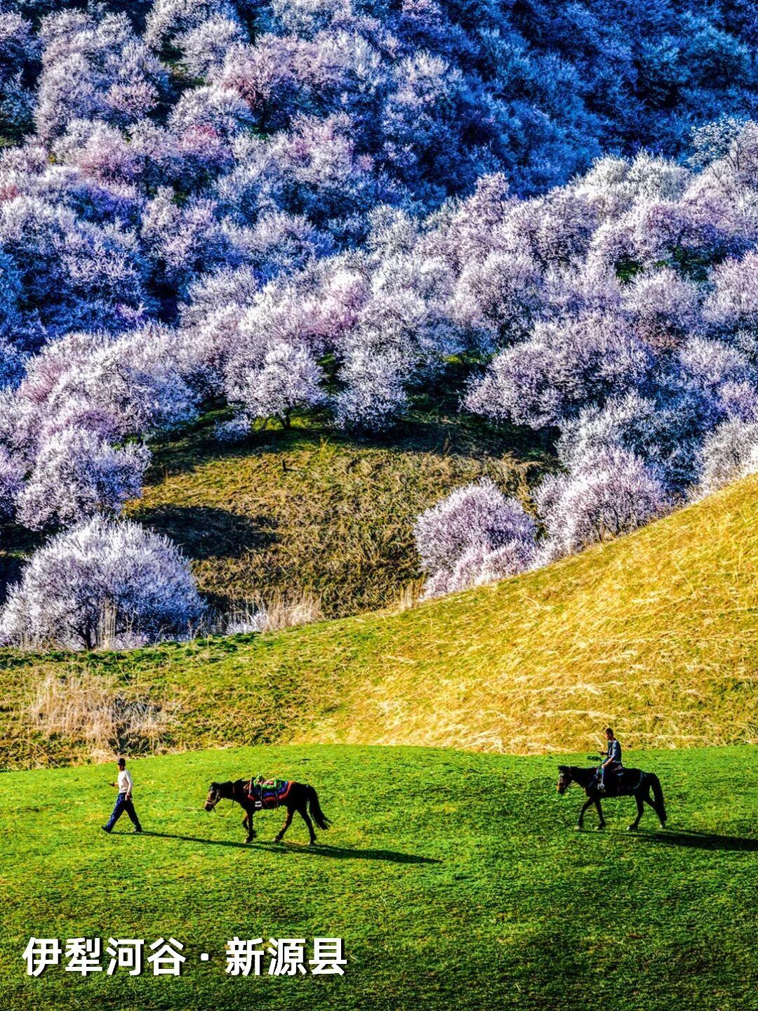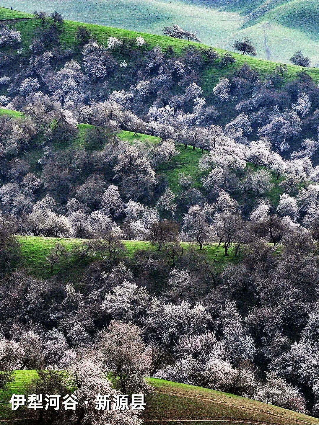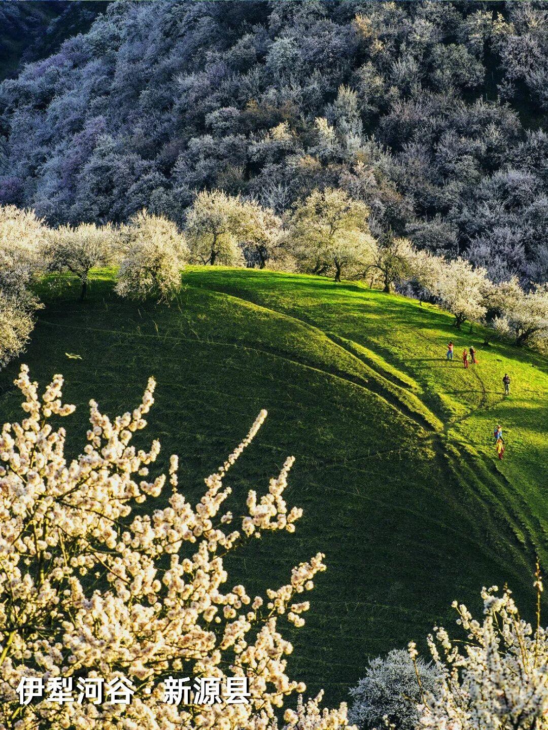 | 新疆杏花,野到极致便是绝色 江南的杏花,开在烟雨中,温柔婉约,像一幅水墨画。可杏树天生喜光耐旱,温润的江南并非它最适宜的家,遥远的新疆才是它真正的故乡——那里阳光充足,气候干燥,杏花开得热烈而自在。 自三月中旬起,春风吹过新疆,杏花渐次染遍这片土地。它们开得肆意、开得张扬,野到极致,便成了人间绝色。 🌸 伊犁河谷|最美野杏花 每年四月,吐尔根的野杏花开满山谷,各色的杏花和翠绿的山坡,勾勒出一幅绝美画卷。之后,大西沟、库尔德宁等地的杏花也将次第绽放。这些杏花不修不剪,天生天养,野性十足,却美得惊心动魄。 地点推荐:新源县那拉提杏花谷、伊宁市海棠路、伊宁县祥和杏园、庆华杏园、托乎拉苏景区、恰普河沟野杏林、霍城县中华福寿山景区、察布查尔锡伯自治县野杏沟、巩留县库尔德宁镇 🌸 帕米尔高原|杏花深处的桃花源 帕米尔高原的杏花不长在景区里,而是开在塔吉克人的土房子旁边,开在石头砌的院墙外,开在赶着牛羊的老人身后。一簇簇盛放的杏花在整个村庄蔓延,每一个村庄都是“杏花村”,仿佛来到了陶渊明笔下的“桃花源”。 地点推荐:塔县大同乡、库科西鲁格乡,阿克陶县塔尔乡 风已暖,花正开, 去新疆,看春天最野的样子。