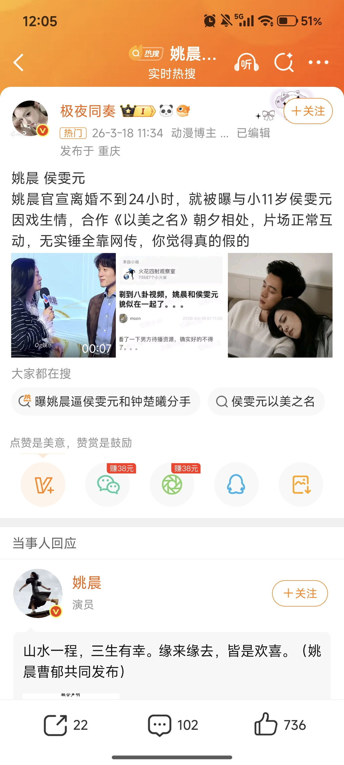 突然之间发个离婚声明,多半就是被拍到了。突然之间发个结婚声明,十有八九是怀孕了。