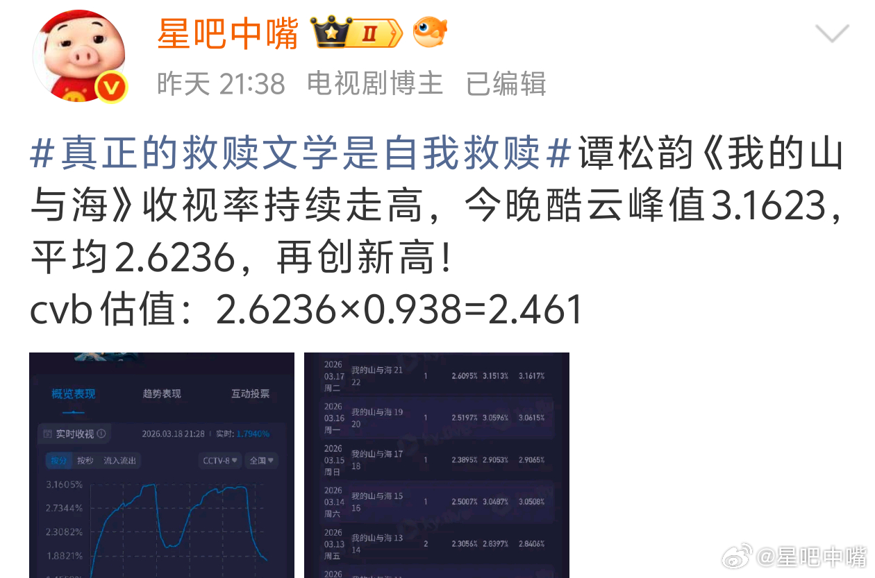 逐玉26集封神真的封神了。收视率0.486新高!3月18日cvb收视日报!