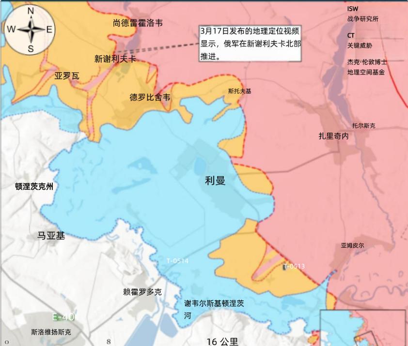 决战双子城之外围争夺:无人机对抗白热化,康城俄军超四成来自乌东 3月16日地理定位视频显示,俄军在红利曼西北新谢利夫卡北部取得小幅推进;3月17-18日,俄军在红利曼全域、斯拉维扬斯克周边十余处据点发起密集攻势。 乌军针对性升级无人机战术,成功收复部分失地、压制俄军冲锋频次,重点打击俄军地面补给线,削弱其装备投送能力;乌军同步在奥泽尔内—亚姆皮尔方向反击,迟滞俄军第25合成集团军进攻节奏。俄军第3合成集团军下属多支摩步旅,依托无人机和火炮轰击乌军前沿阵地。 3月17-18日,俄军围攻康斯坦丁诺夫卡及周边多处据点,攻势全面升级。乌军第11军发言人透露,俄军计划在2026年5月9日胜利日前攻占康斯坦丁诺夫卡,夏季再主攻斯拉维扬斯克、克拉马托尔斯克,目前斯拉维扬斯克方向日均打击超百次,日均投放FPV无人机超400架。 值得注意的是,康斯坦丁诺夫卡方向超40%俄军士兵,来自被占领的克里米亚和扎波罗热州,大量东乌地区士兵参战直接反映了当前乌克兰领土的分裂及人心向的现状。 目前,俄军在前线持续动用“闪电”无人机作为母机,搭载FPV无人机深入乌后方40-50公里打击后勤,频繁波及民用目标。自2月1日星链受限后,俄军打击与指挥能力大幅下滑,虽改用无线电、光纤、卫星通信替代,但效能远不及星链。乌军近3天已摧毁百余架“闪电”无人机,有效遏制俄军纵深遮断企图。 (本文部分参考战争研究所报告)