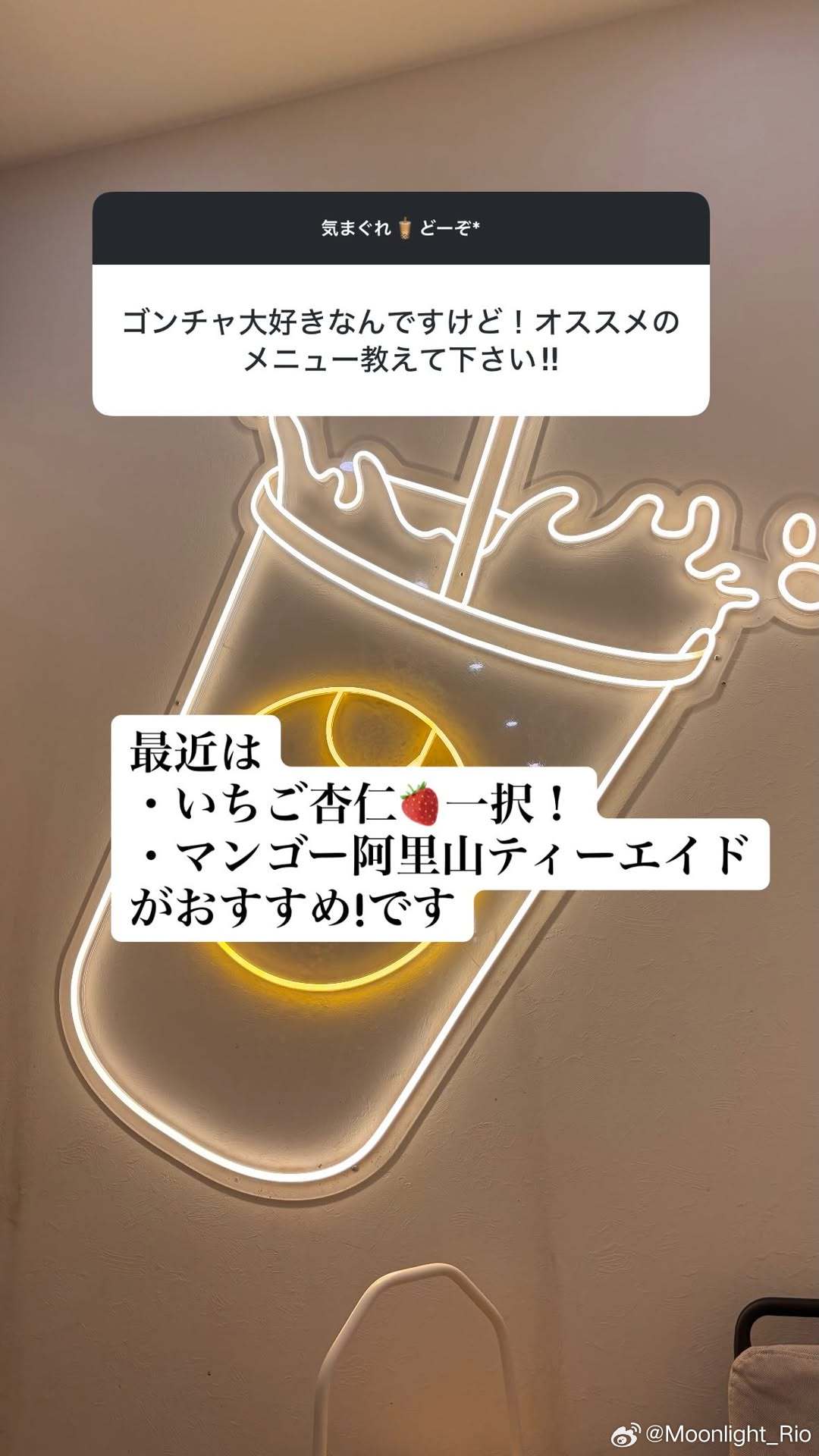 桥本帆乃香开了ig问答🧋提问:我超喜欢贡茶!请推荐一下必点菜单吧!!桥本:最近