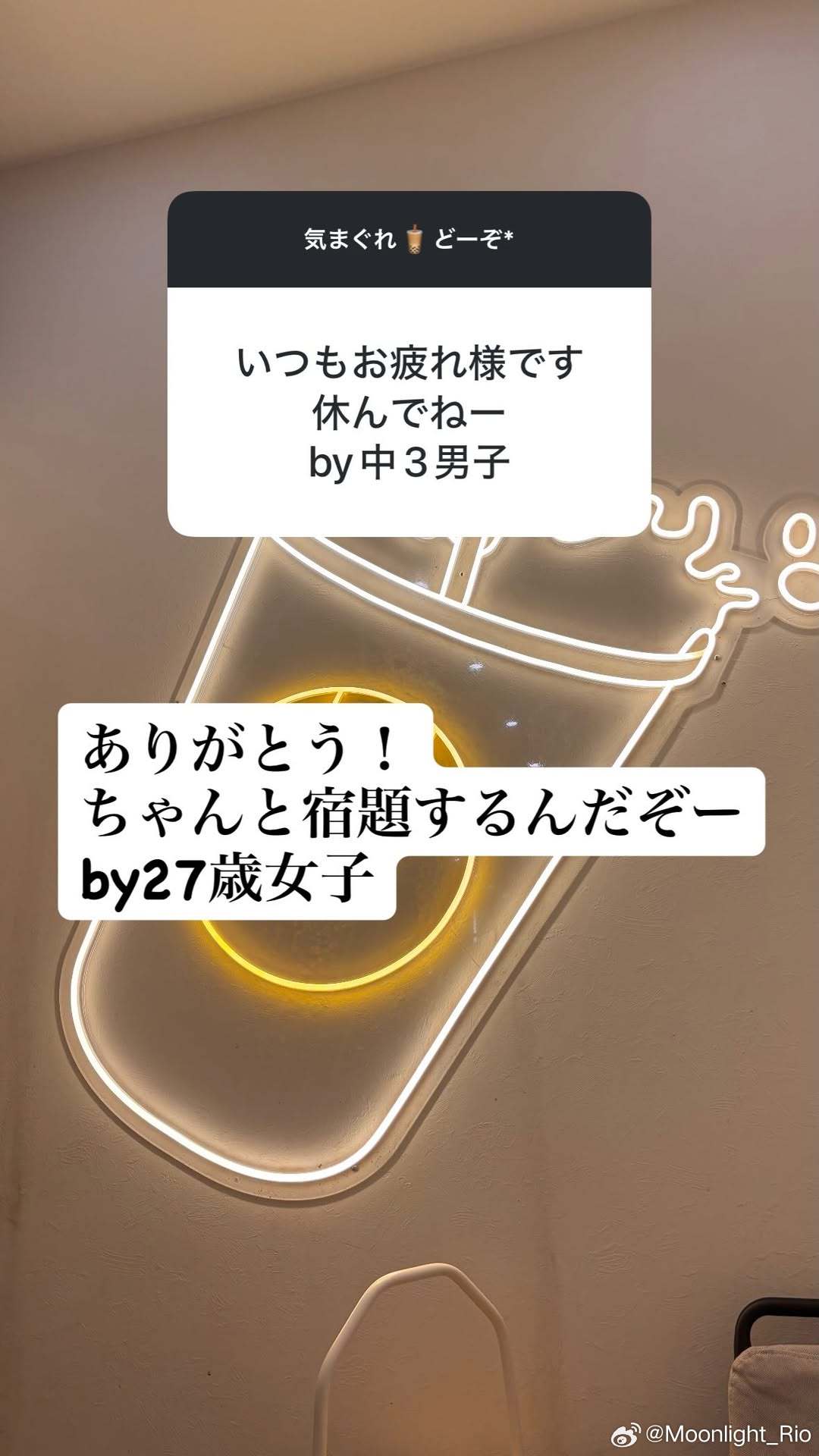 提问:我从来没喝过一杯珍珠奶茶,人生是不是亏了!?桥本:是的,亏了。一定要喝!!!※推荐少糖,笑