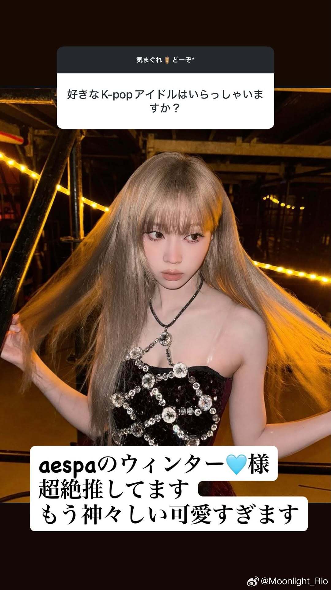 提问:有喜欢的K-pop偶像吗?桥本:aespa的Winter🩵我超级推她太神级可爱了