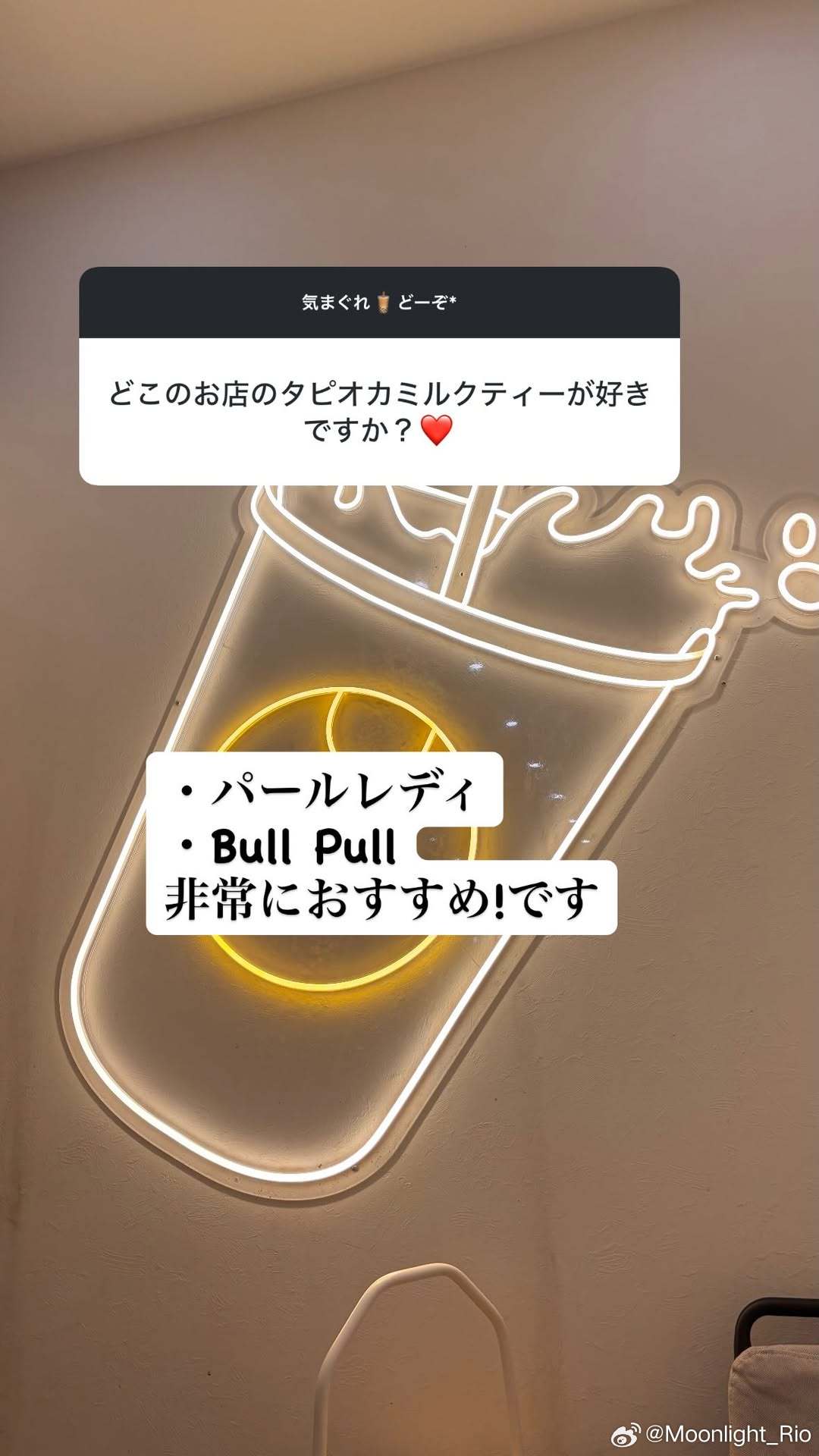 提问:你喜欢哪家店的珍珠奶茶?❤️桥本:Pearl LadyBull Pull这两家都非常推荐!