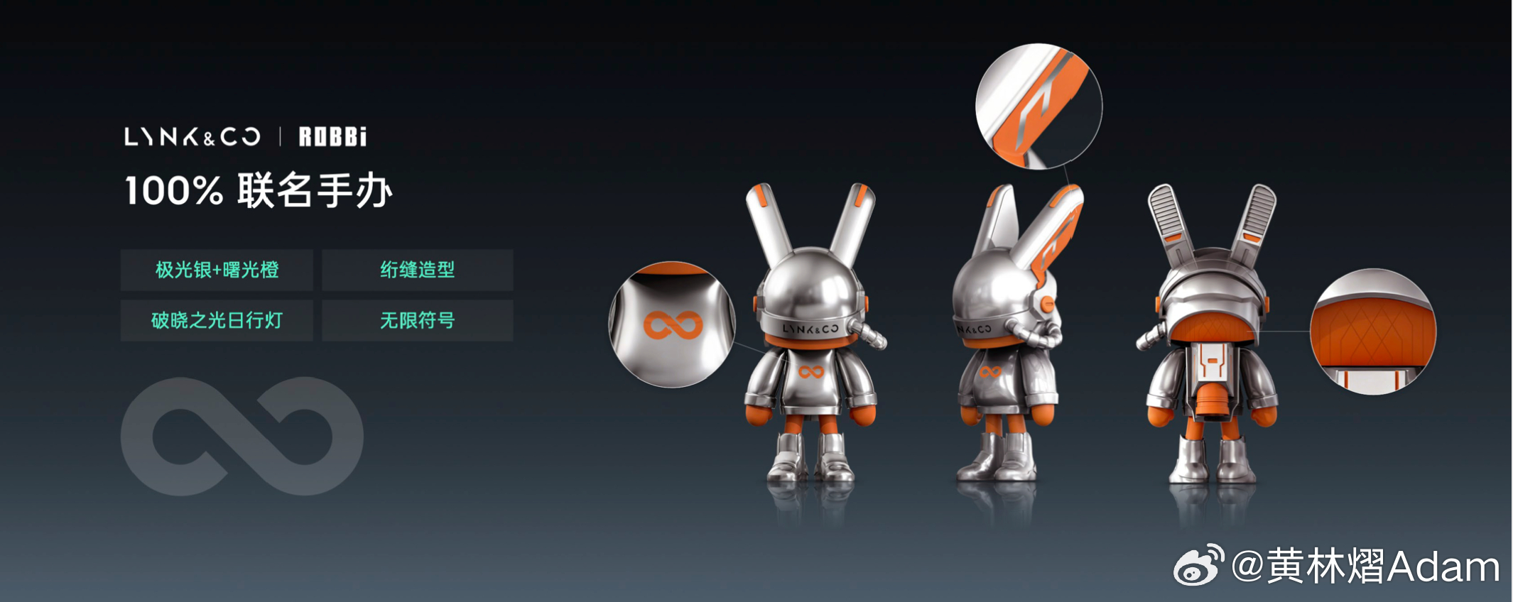 1.领克08 EM-P新增极光银外观+曙光橙内饰、哑光镀铬饰条及20英寸轮毂,称为极光套装,并与潮流IP ROBBI联动,推出同款配色的太空兔。还是很契合领克年轻先锋的调性的