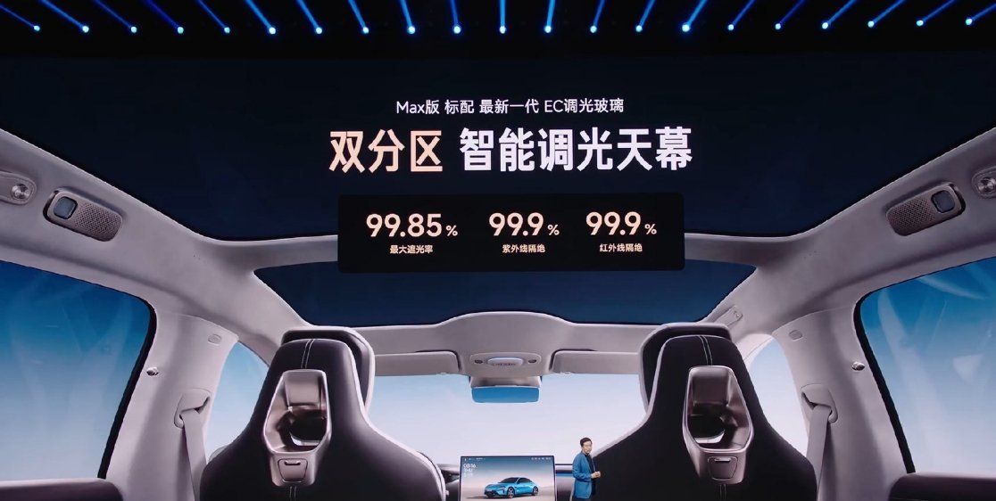 最新一代 EC 调光玻璃不是全系标配,只有 Max 版标配
