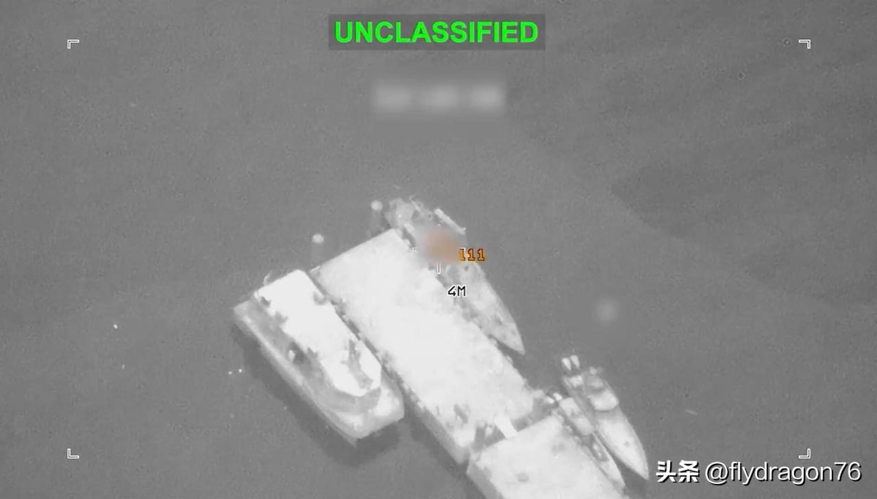 🇺🇸🇮🇷美国空军对伊朗海军舰艇和快艇(包括一艘伪装的舰艇)发动空袭的监控画面。