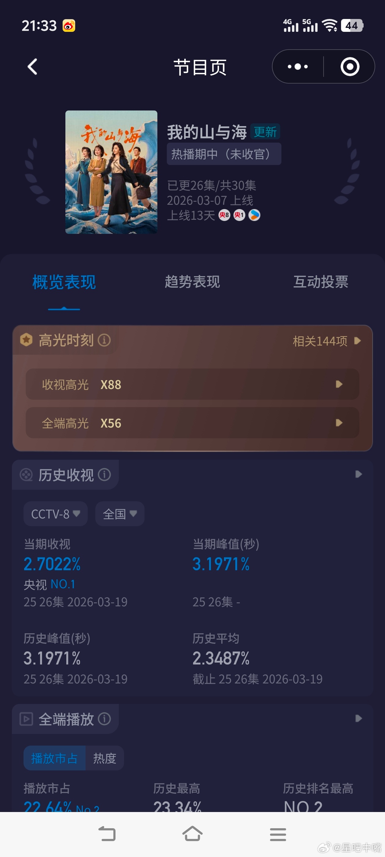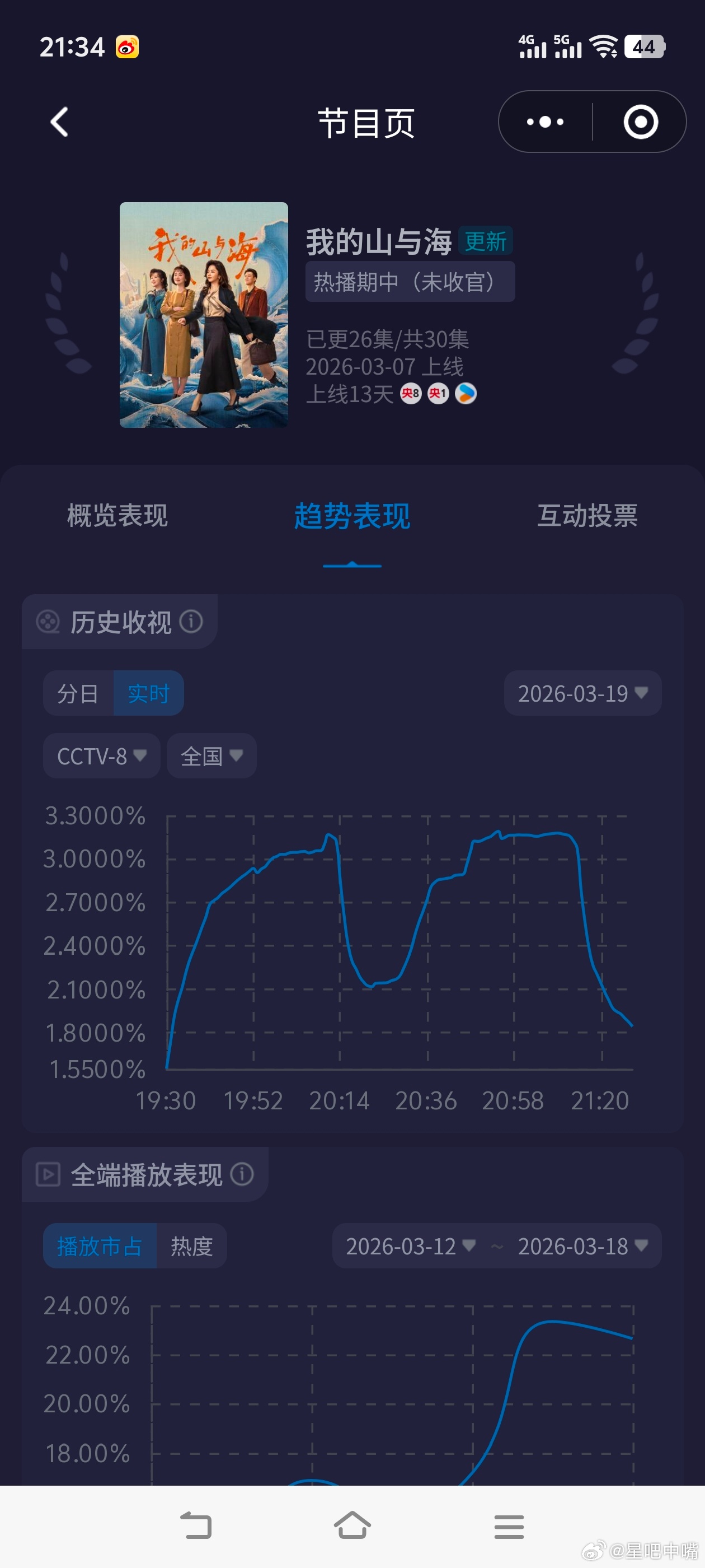 我的山与海涨疯了!谭松韵《我的山与海》酷云实时峰值3.1971,平均2.7022