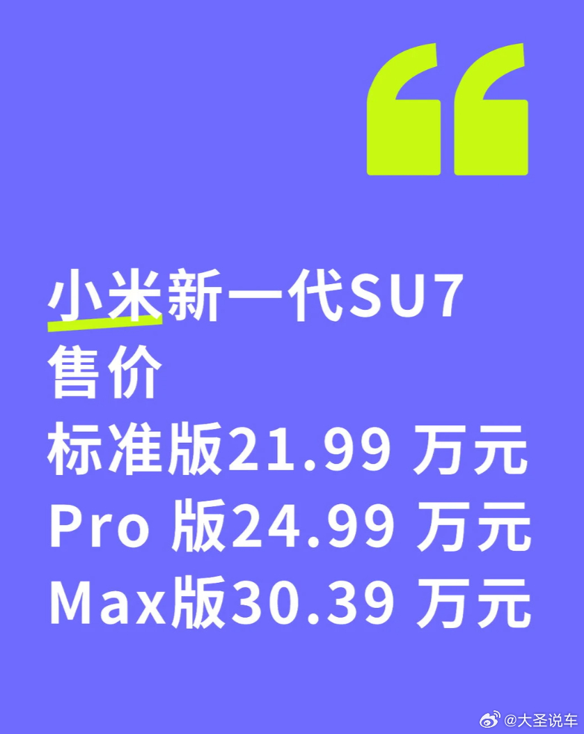 小米新SU7起售价21.99万元新一代SU7如此强大,直接封神。性能猛,配置顶,颜值帅到没朋友,连座椅都搞了18向调节,其他众多黑科技加持,尤其是新款的静音,几乎达到了掉根针都能听到的地步,不得不说整车配置和质量相较于老款堪称翻天覆地的大提升。我以为定价会很高,结果比老款没高多少,标准版售价仅为 21.99 万元,Pro 版售价也才 24.99 万元,Max 版售价 30.39 万元。这么低的价格,这么强悍的性能,这是典型的白菜价啊,充分凸显了小米汽车实实在在让利消费者、不玩套路、性价比拉满,真正做到高配不高价、亲民又硬核,让普通人也能开上可以媲美百万级豪车的顶级超跑!!小米汽车新一代SU734分钟锁单1.5万台苏炳添赞新SU7为中国科技骄傲