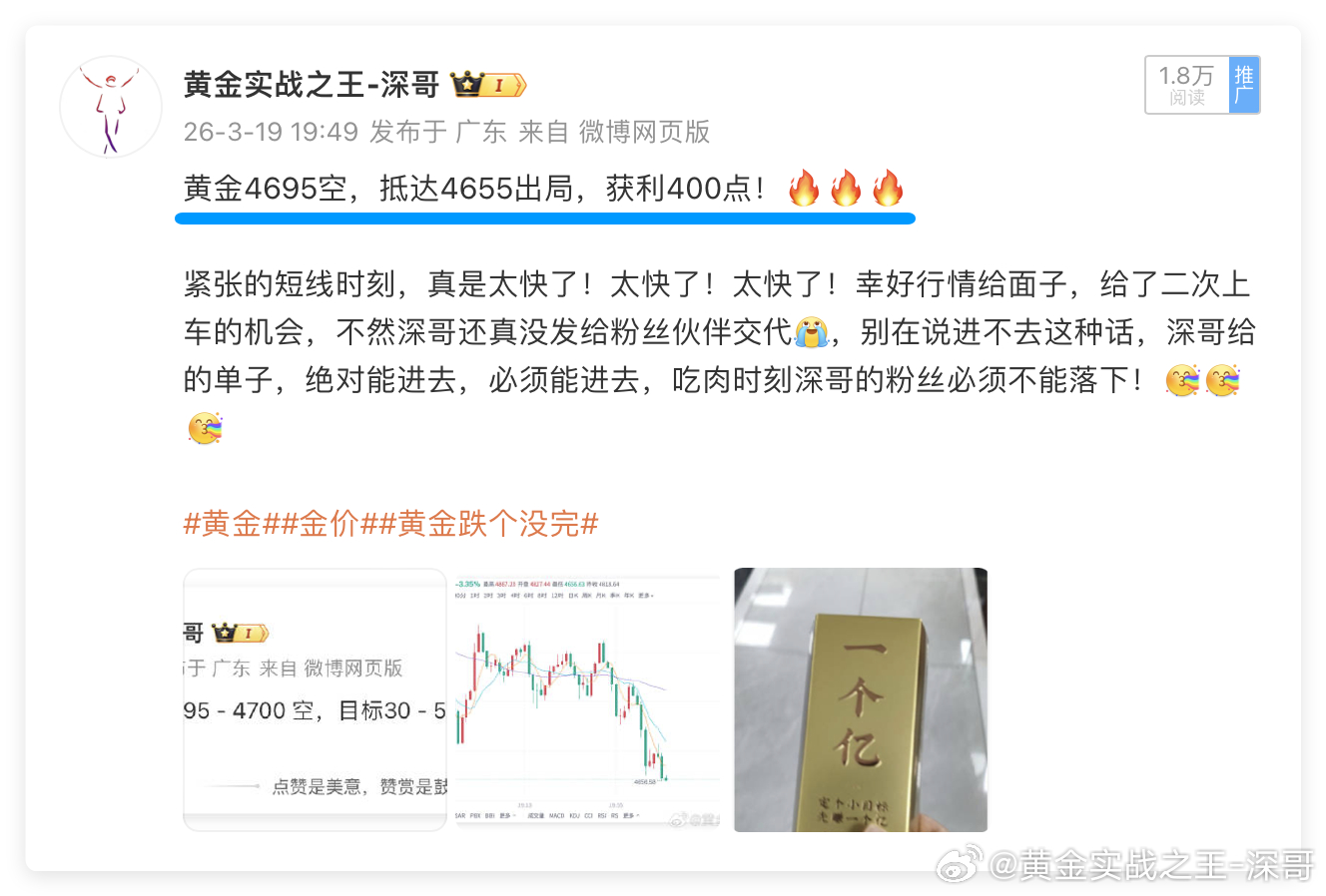 微博里提前 / 实时的单子点位、内盘的操作记录、行情思路的预判、粉丝吃肉的反馈,全是真实记录,没有马后炮、不搞虚噱头,只有提前给的策略、实时跟的节奏、实打实的结果!