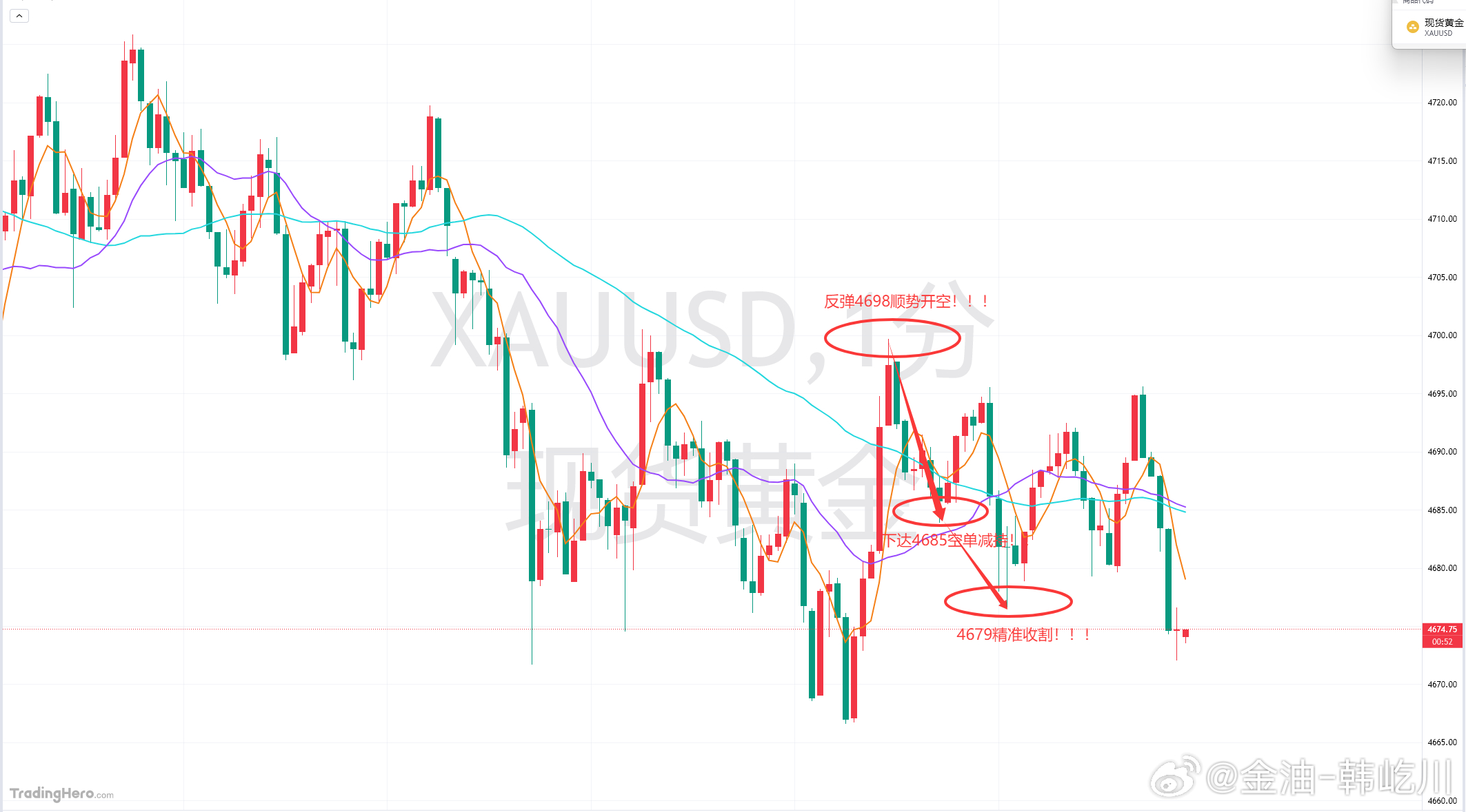 晚间黄金4698的空单,下达4684附近通知护利,盘中安排减持,在4679精准收割,本轮顺从大势,直接斩获190点!!