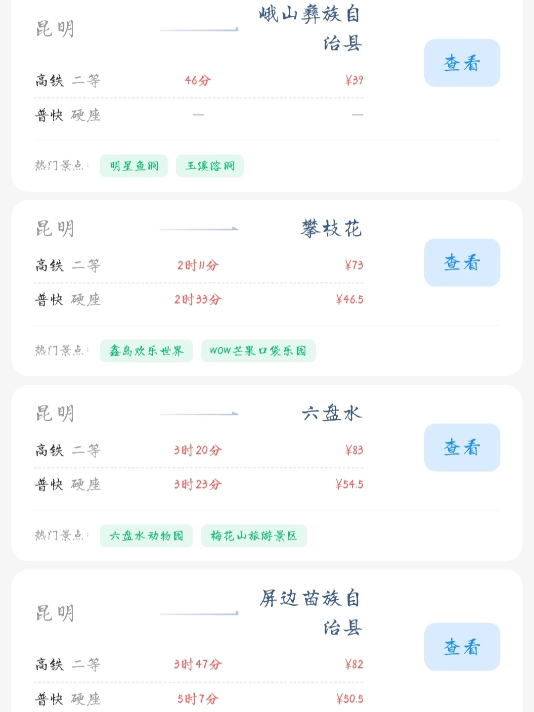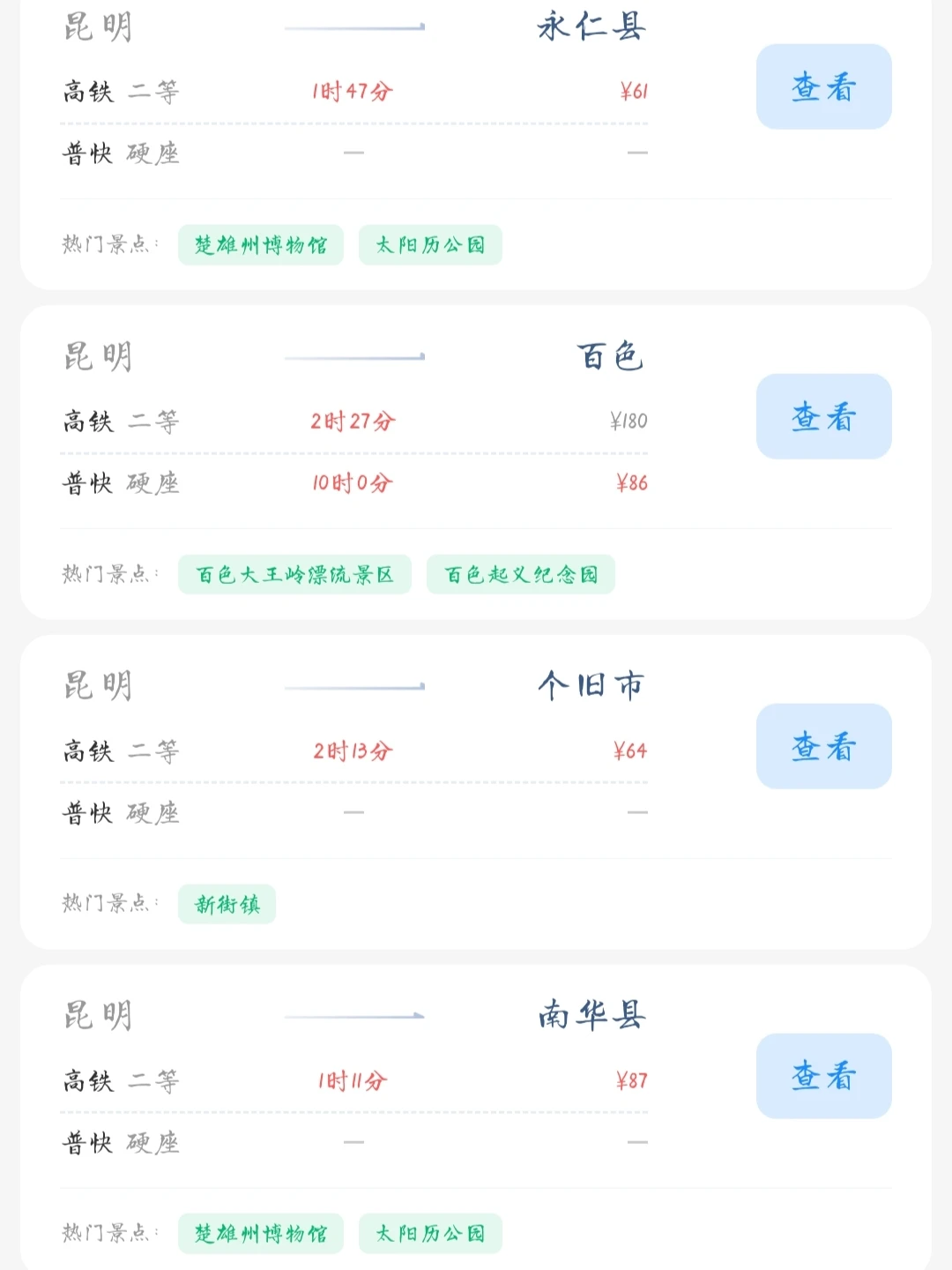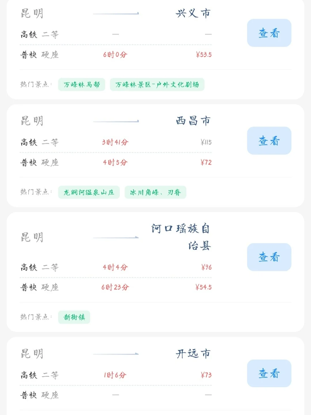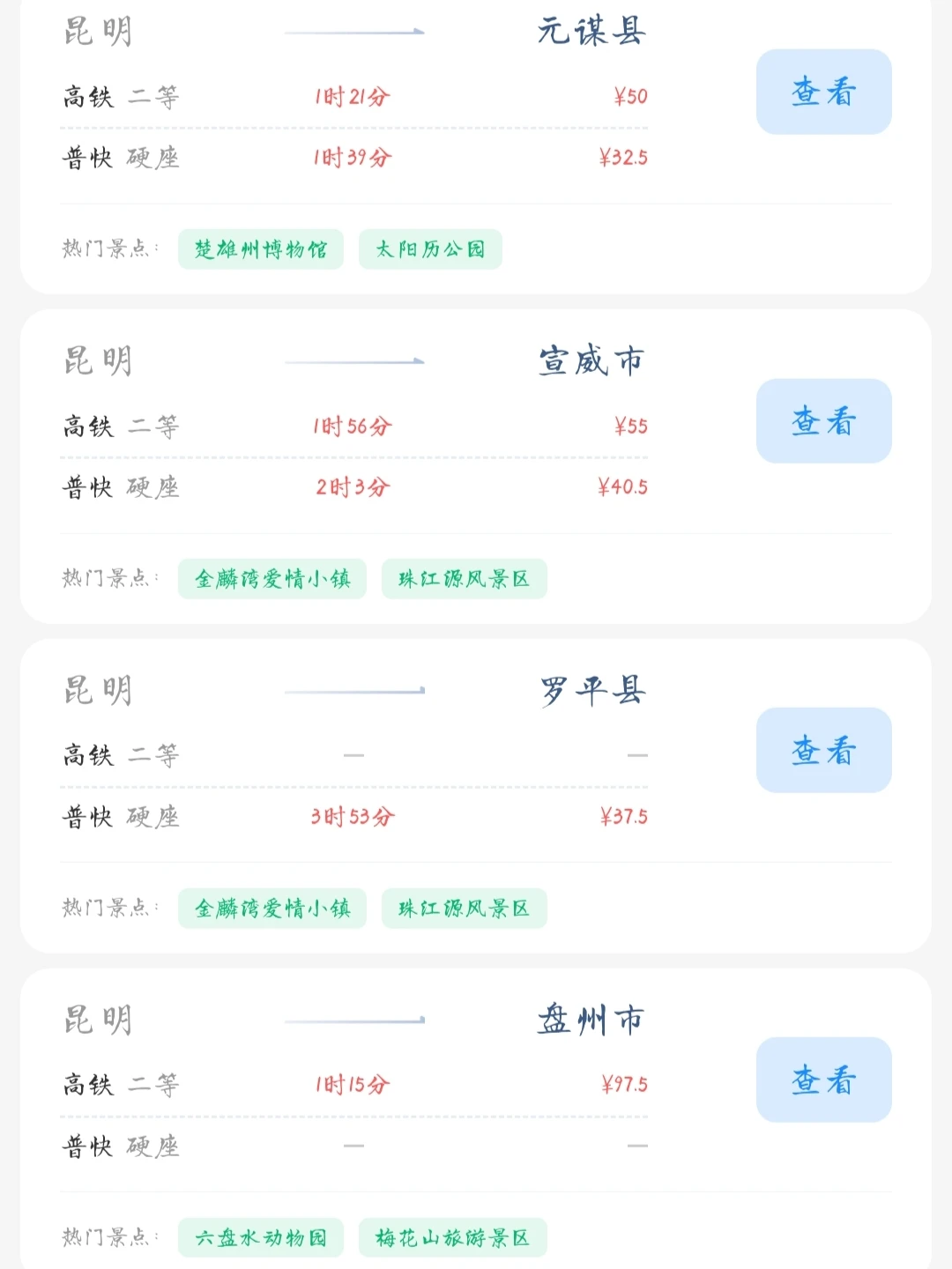 帮昆明的友友们整理出了一份在昆明100块的火车票就能去的旅游城市合集 大家可以看看有没有自己想去的旅游城市 可以抓住暑假的尾巴约上家人朋友一起耍[派对R]