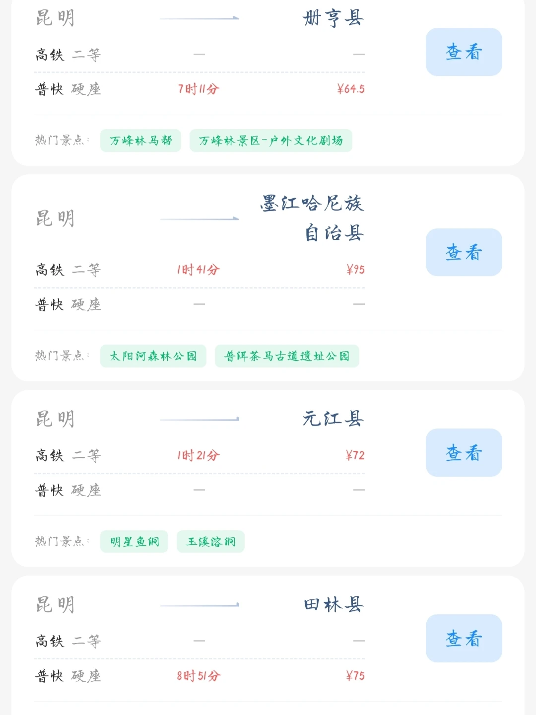 昆明出发📍100块就能去的旅游城市合集