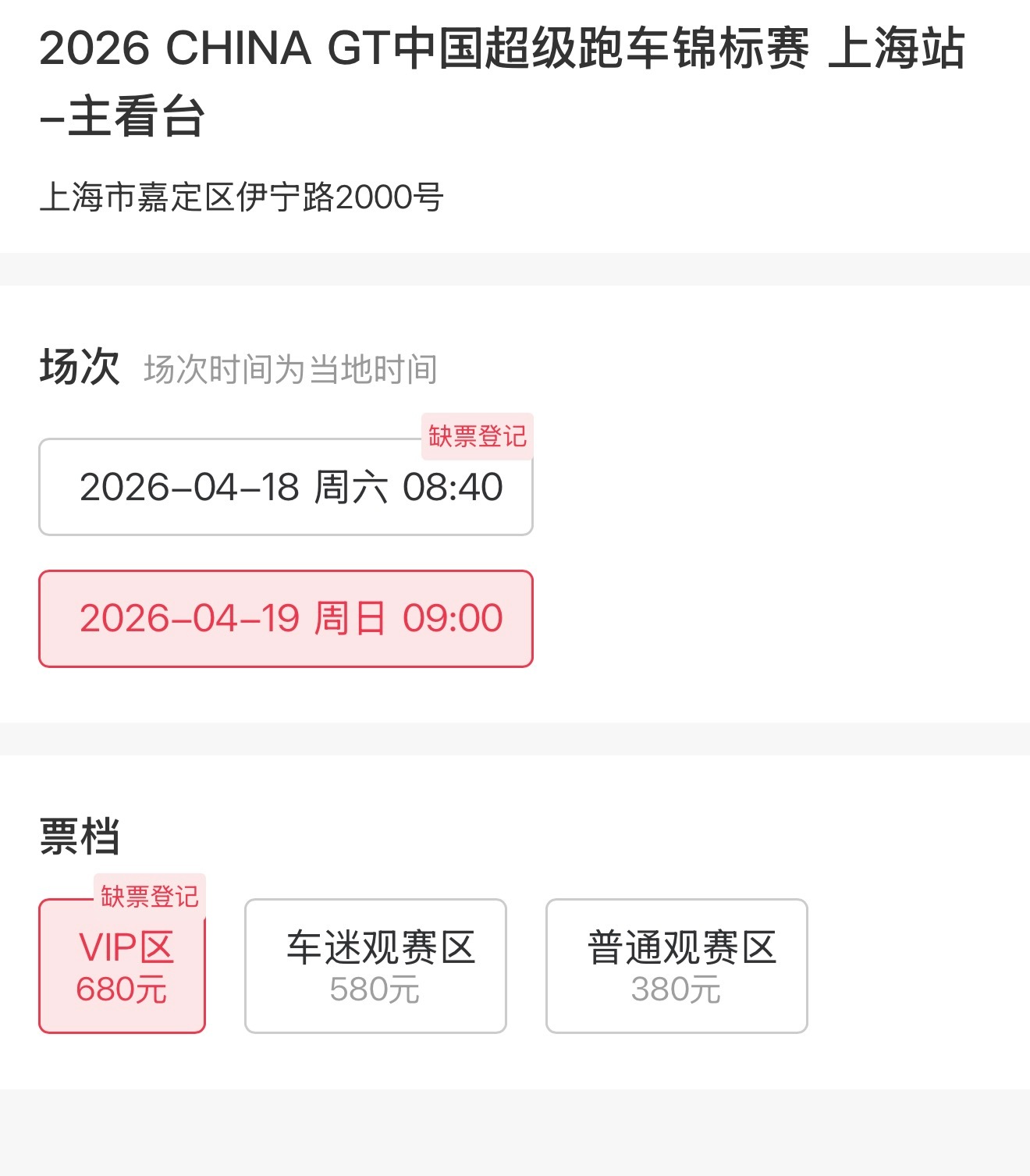 cgt上海站419的赛车票也马上要售罄了…距离开赛一个月两天5w+张要卖光了,只