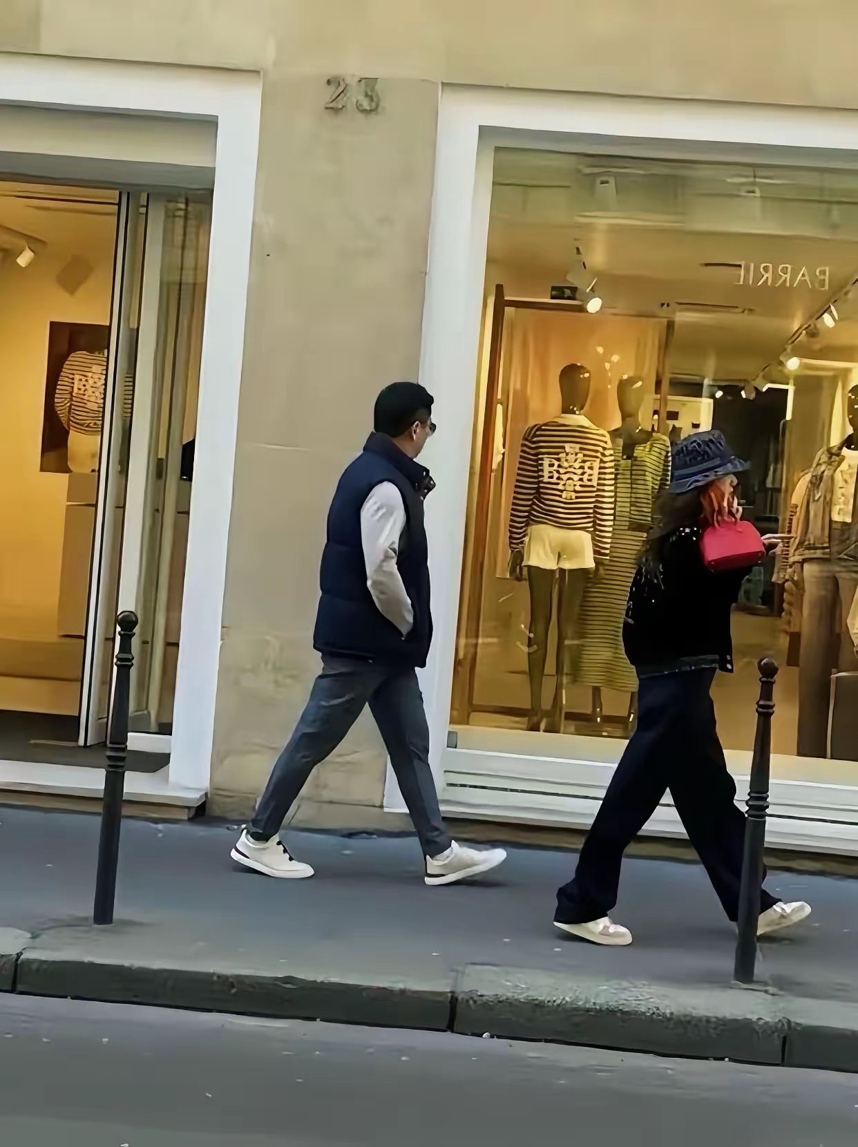 刘强东章泽天现身巴黎街头,章泽天打扮时尚潮流,又酷又美!夫妻二人一前一后走着,