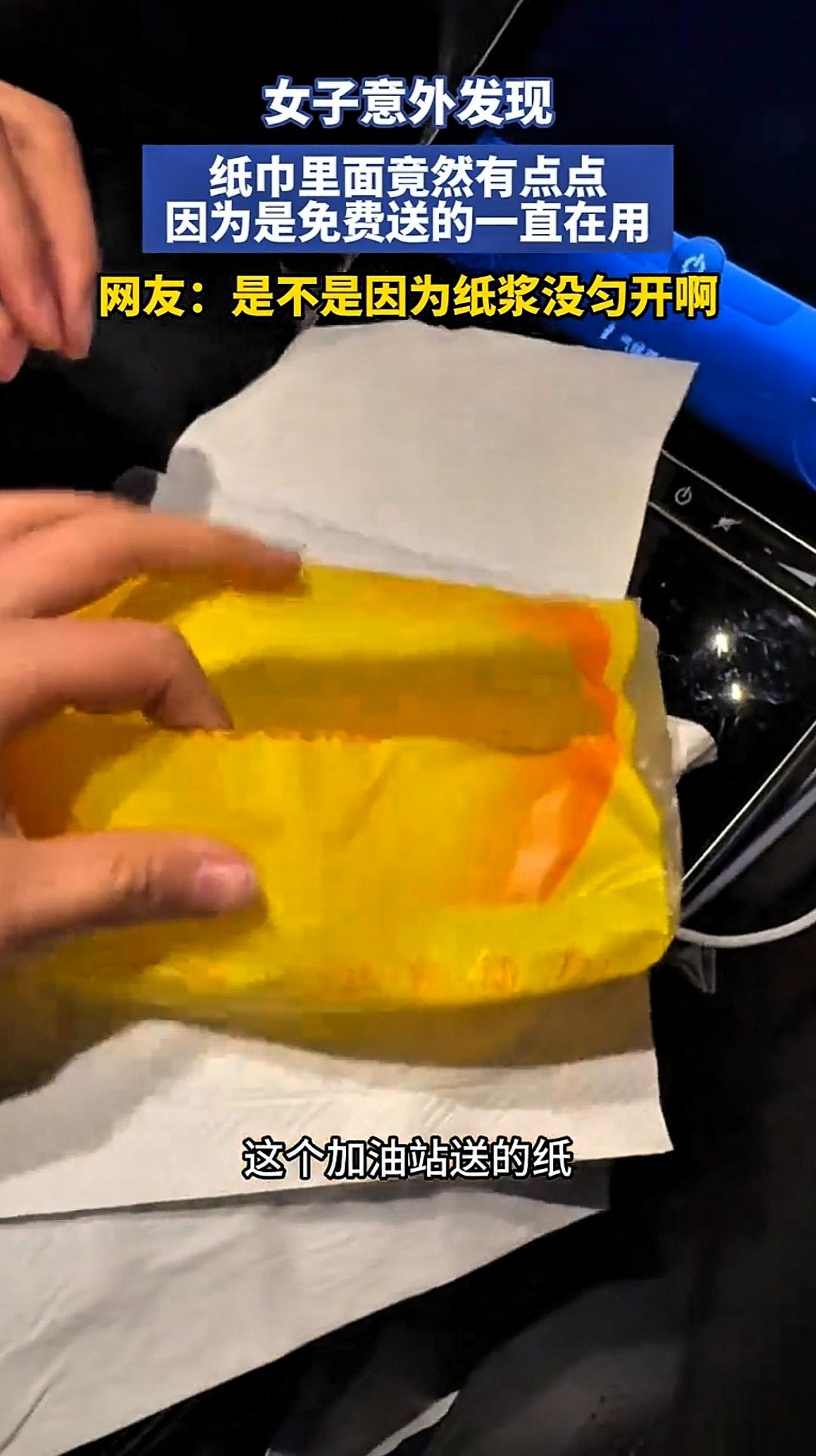 万万没想到!一女子去加油站加油,加油站免费送给她一包纸巾,纸巾看上去干净洁白,没有异常,于是女子就用了,可一次她关灯使用纸巾时,却意外发现纸巾上有很多不明黑点,女子想想都后怕,表示万万没想到这事会发生在自己身上。 免费的东西到底能不能要?最近陕西一位女子的遭遇,给所有人提了个醒。 事情说起来也简单,就是一次再普通不过的加油经历,跟往常一样,加完油后,工作人员热情地递上一包免费纸巾,洁白的外包装,柔软的触感,看上去和超市买的没什么两样,女子没多想,顺手接过来放进了车里,谁能想到,这包不起眼的纸巾,竟暗藏玄机。 接下来几天,这包纸巾成了车上的“常客”,擦手、擦仪表盘,用着还挺方便,直到那天晚上,意外发生了。 当时天色已黑,女子坐在车里,顺手抽了张纸巾擦东西,就在手机屏幕微弱的灯光下,她猛然发现——纸巾上布满了密密麻麻的黑点!起初还以为看花了眼,可凑近一瞧,顿时头皮发麻:这些黑点根本不是印刷图案,而是实实在在嵌在纸里的异物。 更让人细思极恐的是,当她打开车顶灯仔细检查时,那些黑点竟然“消失”了,只有在昏暗环境下,借着逆光才能看得一清二楚。 也就是说,这些天她一直在用的纸巾,表面光洁如新,实则暗藏“惊喜”,如果不是偶然在晚上使用,可能永远都不会发现这个秘密。 “想想都后怕,”女子事后感慨,那些黑点到底是什么?怎么进去的?用这样的纸巾擦手擦脸,有没有风险?一连串的问号,让她不寒而栗。 消息传开后,网友炸了锅,有人调侃“加油站送的纸巾只敢擦车窗,不敢擦脸”,有人分享类似经历“遇到过纸巾发霉、有虫卵”,更多人则表示“以后免费的东西得留个心眼”。 其实仔细想想,加油站送纸巾本是好事,方便车主应急使用,可如果赠品质量不过关,反而好心办坏事,对车主来说,免费纸巾用着方便,但毕竟接触皮肤,质量安全真不能马虎。 这事也给商家提了个醒:赠品也是品,代表着脸面,一包纸巾不值几个钱,可要是因为质量问题砸了招牌,那才真是得不偿失。 话说回来,谁能想到普普通通一包纸巾,还得关着灯检查?生活里这些意想不到的“坑”,真是防不胜防,下次再遇到免费赠送的东西,你还会毫不犹豫地收下吗?