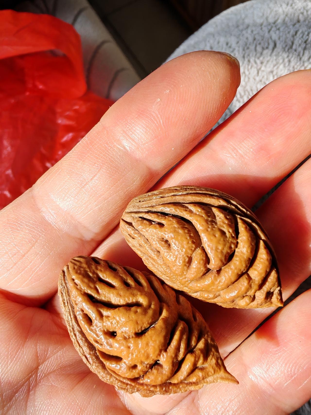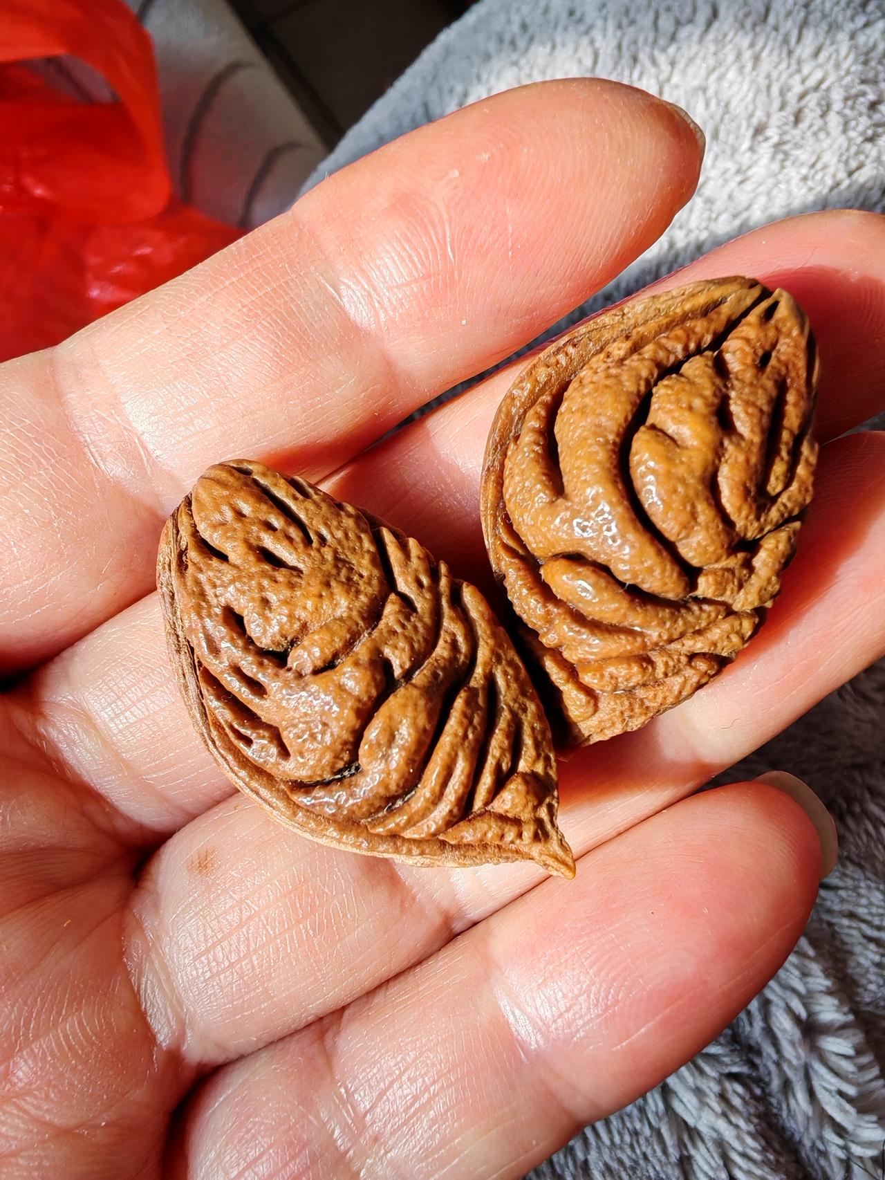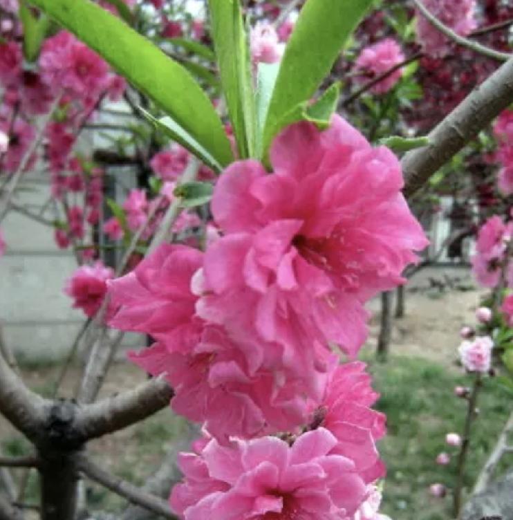 想知道这么美的桃核它的花是什么样子吗? 这么美的桃核,它的花朵更美。 这种碧桃的花是复瓣的,一棵树上会开出玫红色和浅粉色两种花,花开时灿烂炫目,美不胜收。 春看花,秋食果,冬盘核。 修心养性!