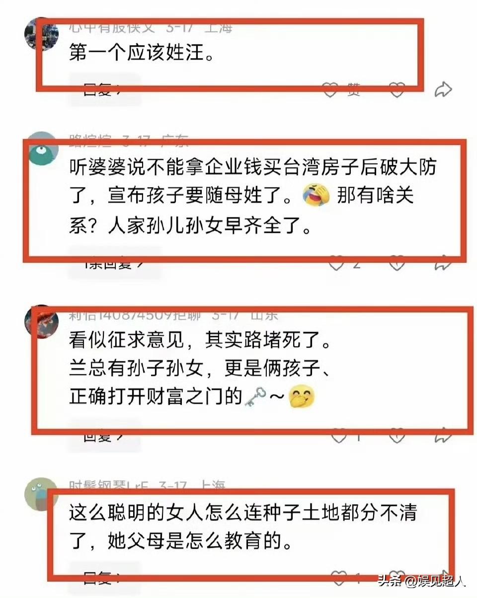 汪家又炸锅!马筱梅提孩子随马姓,张兰真不是对手? 马筱梅刚在直播松口,说汪宝大概率跟她姓马,这事直接把汪家推向风口浪尖。 她也没把话说死,强调还在和张兰商量,可这半透半掩的态度,明显是把婆婆架在了火上烤。 咱先捋捋马筱梅的底气。她是独生女,娘家有盼头,汪小菲已有两个孩子随汪姓,血脉传承够稳了。 更关键的是,她自己开医美诊所,经济独立,不图汪家一分钱,说话硬气得很。 反观张兰,一辈子看重家族传承,财产只留给姓汪的子孙,之前连孙子小名都要亲自定。 马筱梅这招确实高明,讲话永远只说三分,不把话说满,既表达了想法,又把选择权抛给张兰,进退自如。 其实孩子跟谁姓都是小事,张兰犯不着较真。 自己本就姓张,儿孙的事让他们小两口自己做主就好。 马筱梅有底气、有分寸,张兰再强势,这场博弈从一开始就没占上风。