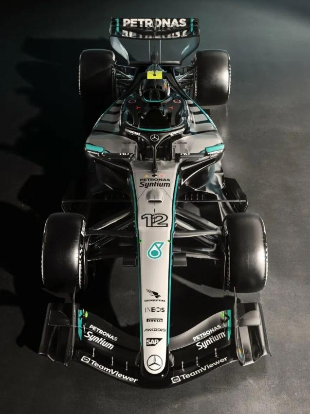 梅奔W17新涂装:adidas三条纹上身,这是要改行卖运动服? 梅赛德斯发了W17的涂装,第一眼看过去差点以为走错片场——侧箱和引擎盖上那几道斜条纹,跟adidas的三条杠简直一个模子刻出来的。官方说法是致敬合作伙伴,但我怎么看怎么像把运动服穿上了赛道。 新赞助商微软也上了,头翼和进气口印着大Logo,据说一年6000万美元。加上原有的马石油绿,W17现在集齐了科技、运动、能源三大元素,活脱脱一个行走的广告牌。 说回设计本身。侧箱进气口还是三角形,但整个侧箱拉长上翘,一直延伸到排气管。破风板用了4层,头翼端板外侧加了小翼,尺寸跟红牛RB22差不多。这套空力能不能打不好说,但至少看着比前几年那几台“秃头车”顺眼多了。 有意思的是裸碳大面积外露,银色只剩鼻锥和侧箱那一点。托托说这是为了减重,我觉得更像在炫耀“我家的碳纤维就是比别人轻”。 动力单元据说有“灰色科技”,压缩比做得有点高,今年可能是最大热门。但愿别再像W13那样,发布会上吹上天,赛道上一地跳跳糖。【来自懂车帝车友圈】