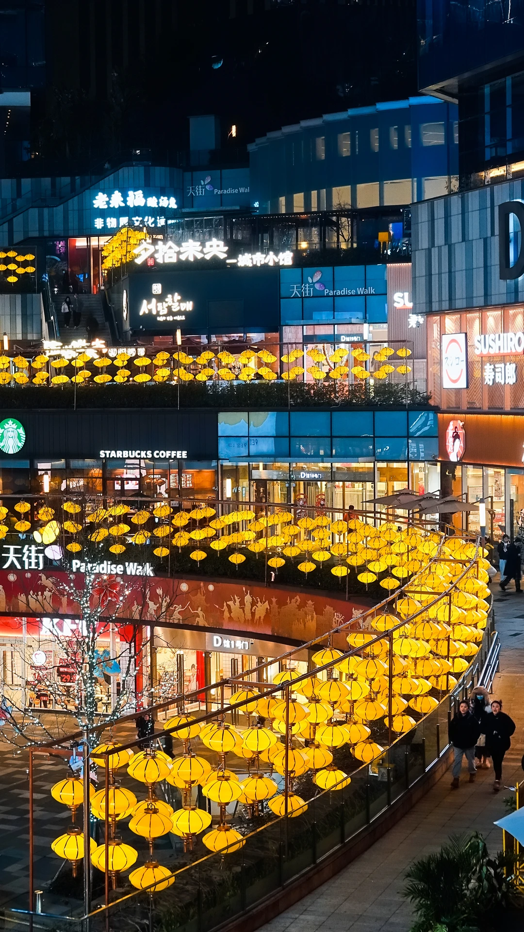 层层叠叠的灯笼从D馆环岛垂落