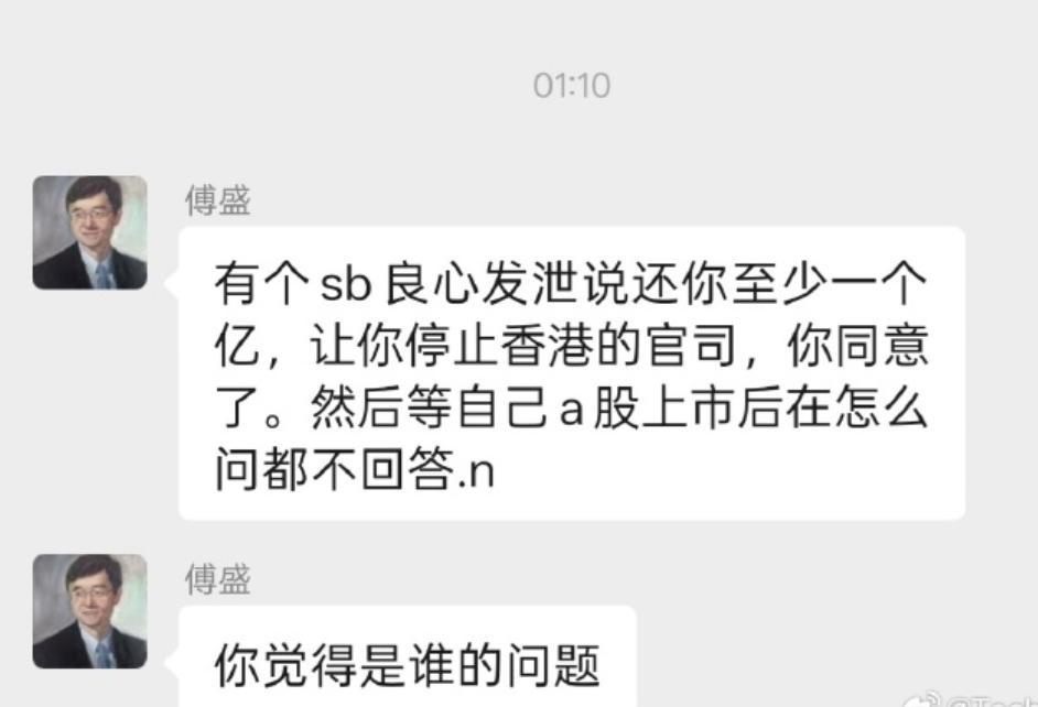 猎豹移动董事长傅盛深夜开撕周鸿祎:欠一个亿不还,还删我 Tech星球3月20日消息,据新浪科技、鞭牛士报道,3月20日凌晨,猎豹移动董事长傅盛在多个群内开撕360集团创始人周鸿祎,直言其欠钱不还,还删除好友。 有群友试图“劝解”:“你们大晚上的。”而傅盛直言:“你被人黑了几个亿被人骗还钱,最后还被删,再这么不以为然,我就觉得你牛逼。” 傅盛还称,“有个xx良心发现说还你至少一个亿,让你停止香港的官司,你同意了,然后等自己A股上市后在怎么问都不回答,你觉得是谁的问题。” 公开资料显示,傅盛于2005年加入周鸿祎创办的奇虎公司,从一线员工成长为360安全卫士负责人,2008年因理念分歧离开360,双方随后陷入多年诉讼与口水战,恩怨持续十余年。 2024年1月,两人曾公开同台对谈,表态冰释前嫌。如今二人恩怨再度公开。 截至目前,周鸿祎本人和360方面均未就此事做出回应。