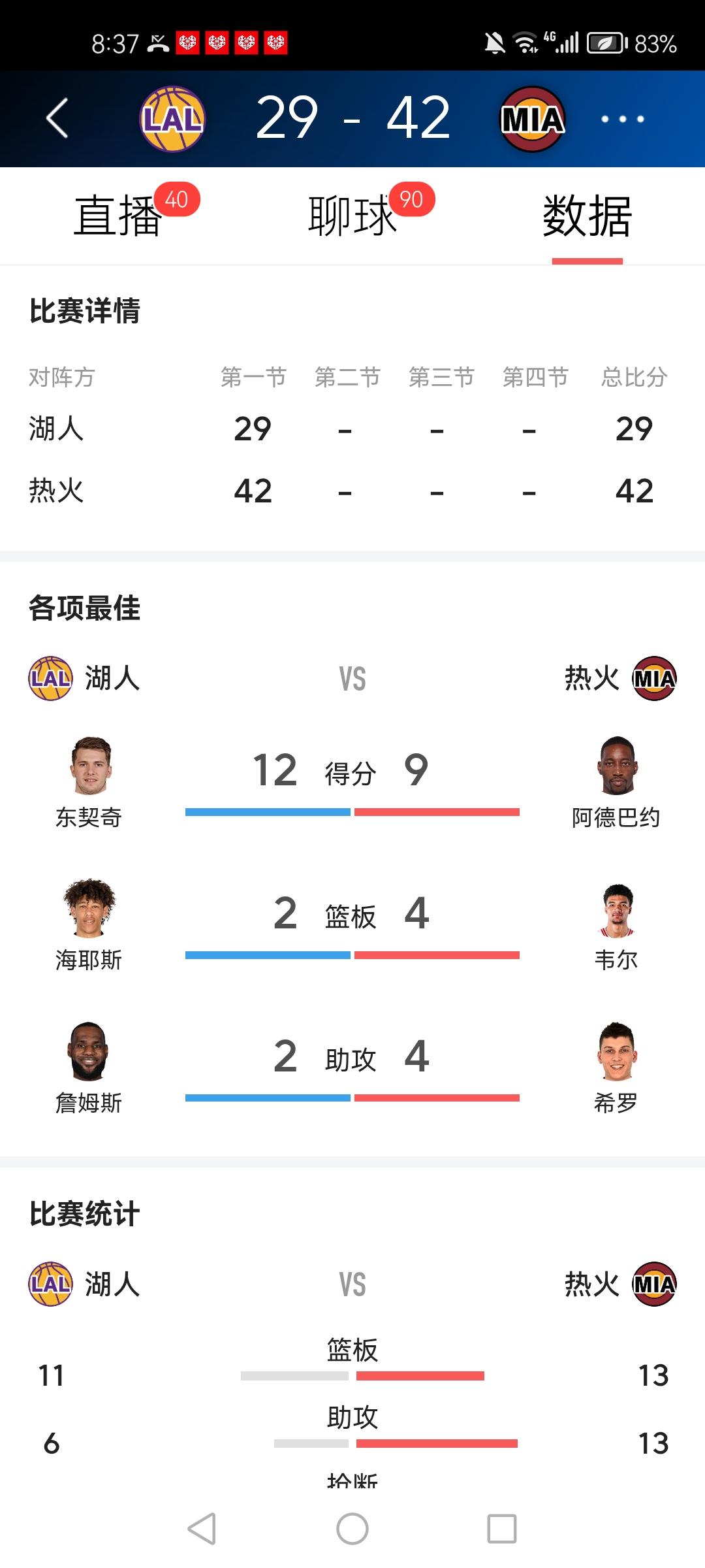 一节花?雷迪克这操作真心看不懂! 湖人对阵热火首节打完,29-42直接大比分落后,比赛眼看就要“一节花”。 场上湖人球员完全不在状态:脚步沉、运球磕绊、传球失误、连球都拿不稳,整支球队像被绑住了一样。 明明是四天三赛,刚打完一连串高强度硬仗,全队体力早已透支,再加上背靠背作战,人困马乏。 这种局,适当轮休、放一场保护球员,不是很合理吗? 真当球员都是铁打的? 真以为热火是随便拿捏的软柿子? 还真冲着20连胜去拼? 看着场边雷迪克一脸无奈捂脸的样子,真是又气又急。 难道就因为是全美直播,联盟不让轮休、必须硬着头皮打? 这种透支式死草主力,真的看不懂!