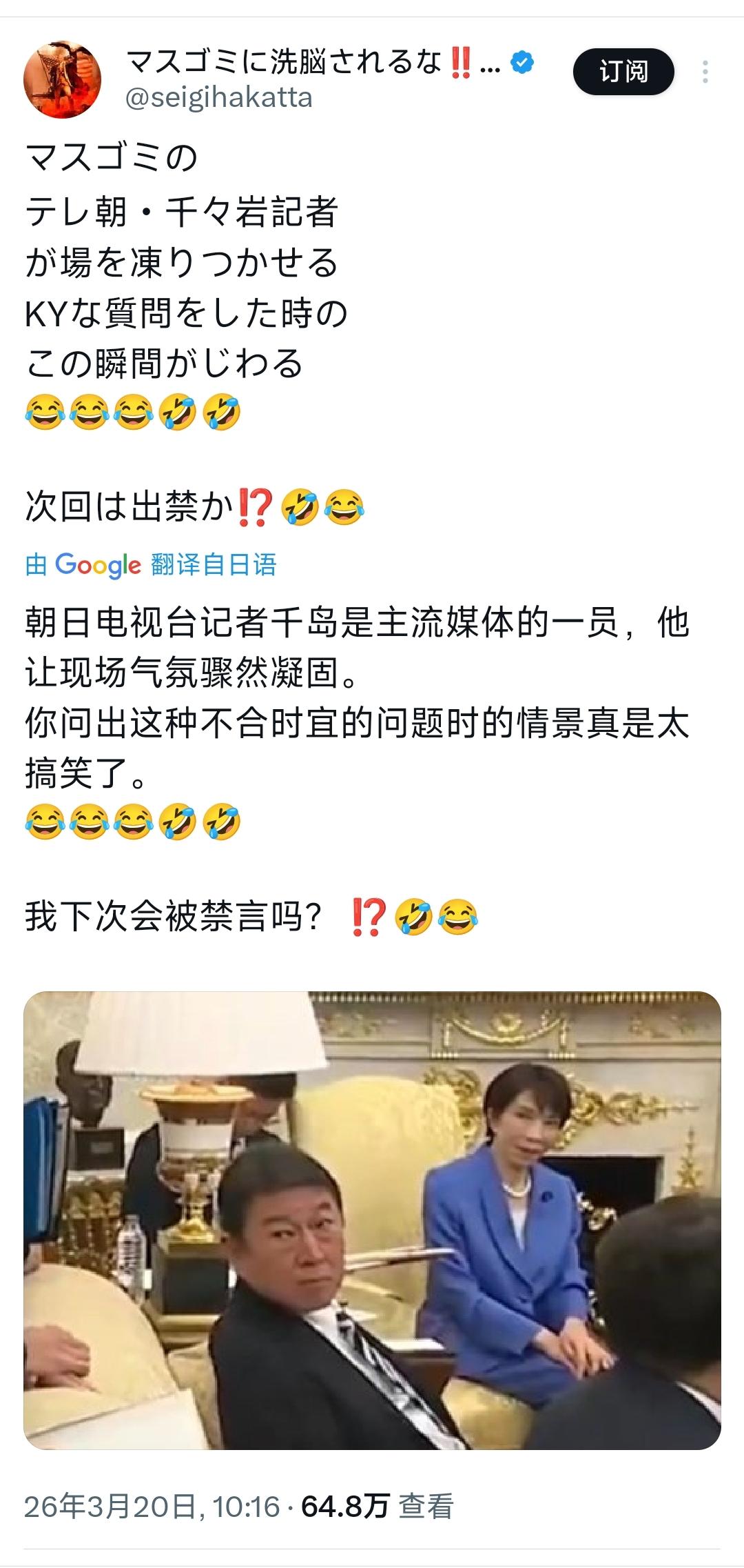 日本不少民众竟纷纷指责朝日电视台记者,只因对方当场质问特朗普“美军打击伊朗为何未提前通知日本”,还认为这一提问让现场气氛凝固、实属不合时宜。 殊不知,真正该被声讨的,本是仗势欺人、拿珍珠港历史伤疤当众羞辱日本的特朗普!他无视外交惯例,借着历史旧账敲打盟友,尽显霸权者的傲慢与蛮横,而这些日本人却对始作俑者视而不见,反倒苛责敢于发出质问的记者。 说到底,还是因为很多日本人真把美日这种不对等的依附关系当成了平等同盟,心甘情愿做美国的附庸,连被羞辱都只会向内追责,这般麻木与盲从,恰是日本对美依附的悲哀写照。