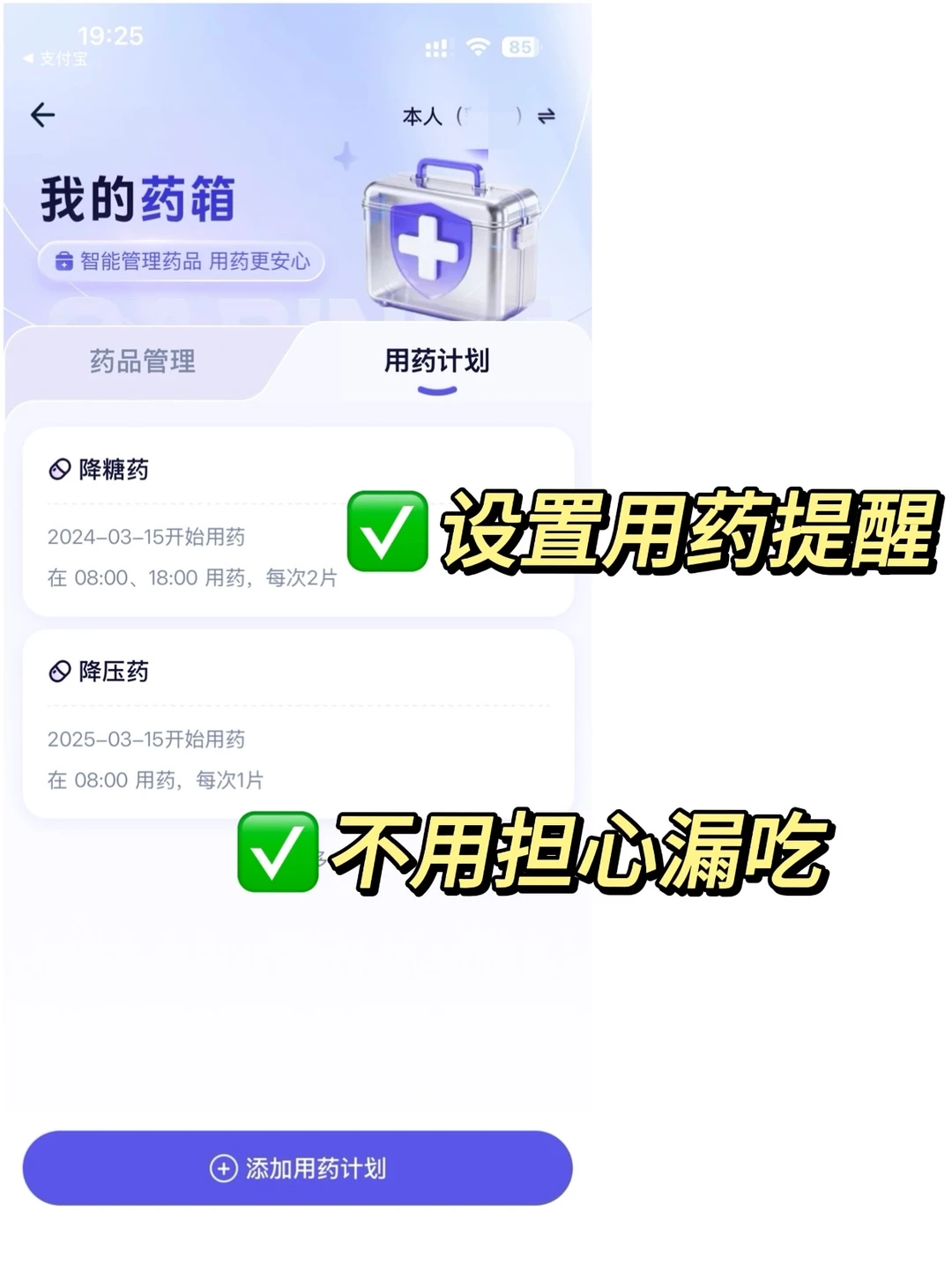 ◼️慢病人群平时要吃的💊是真的特别多,有时候忘记该怎么吃,就拍一下药盒,立刻就能看到清晰的药品名称、用法、用量、用药禁忌,还能够设置用药提醒⏰,不用担心漏吃