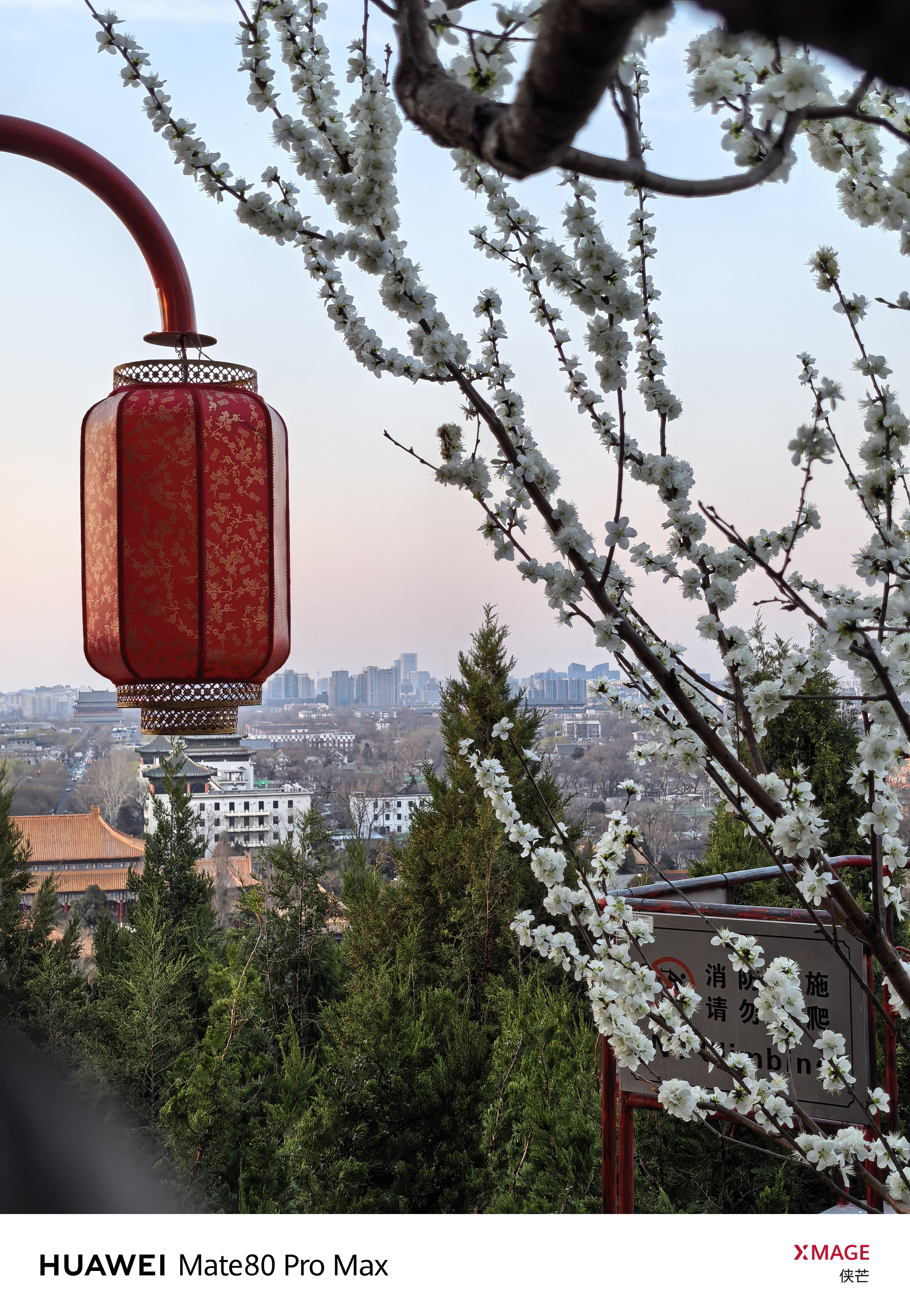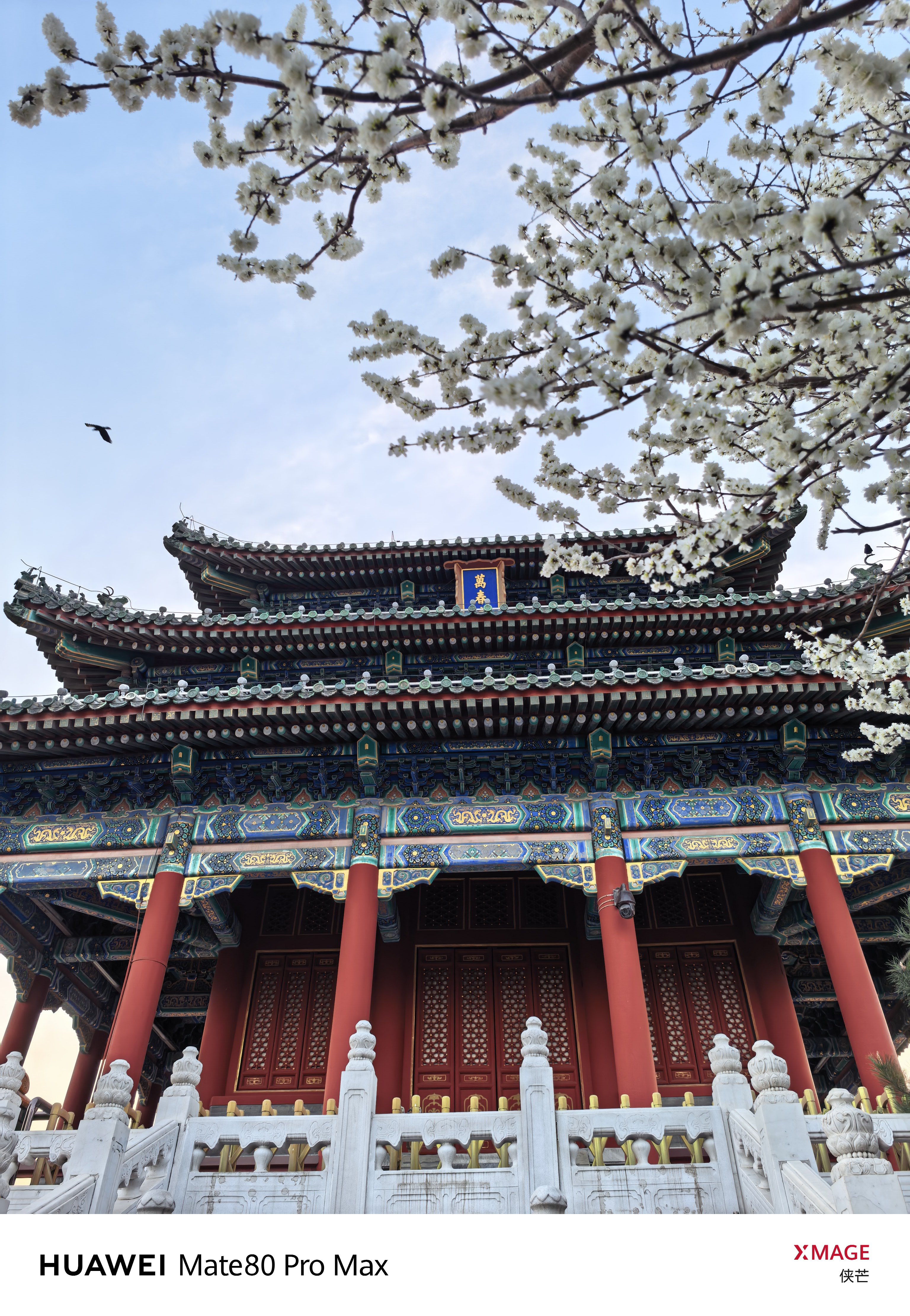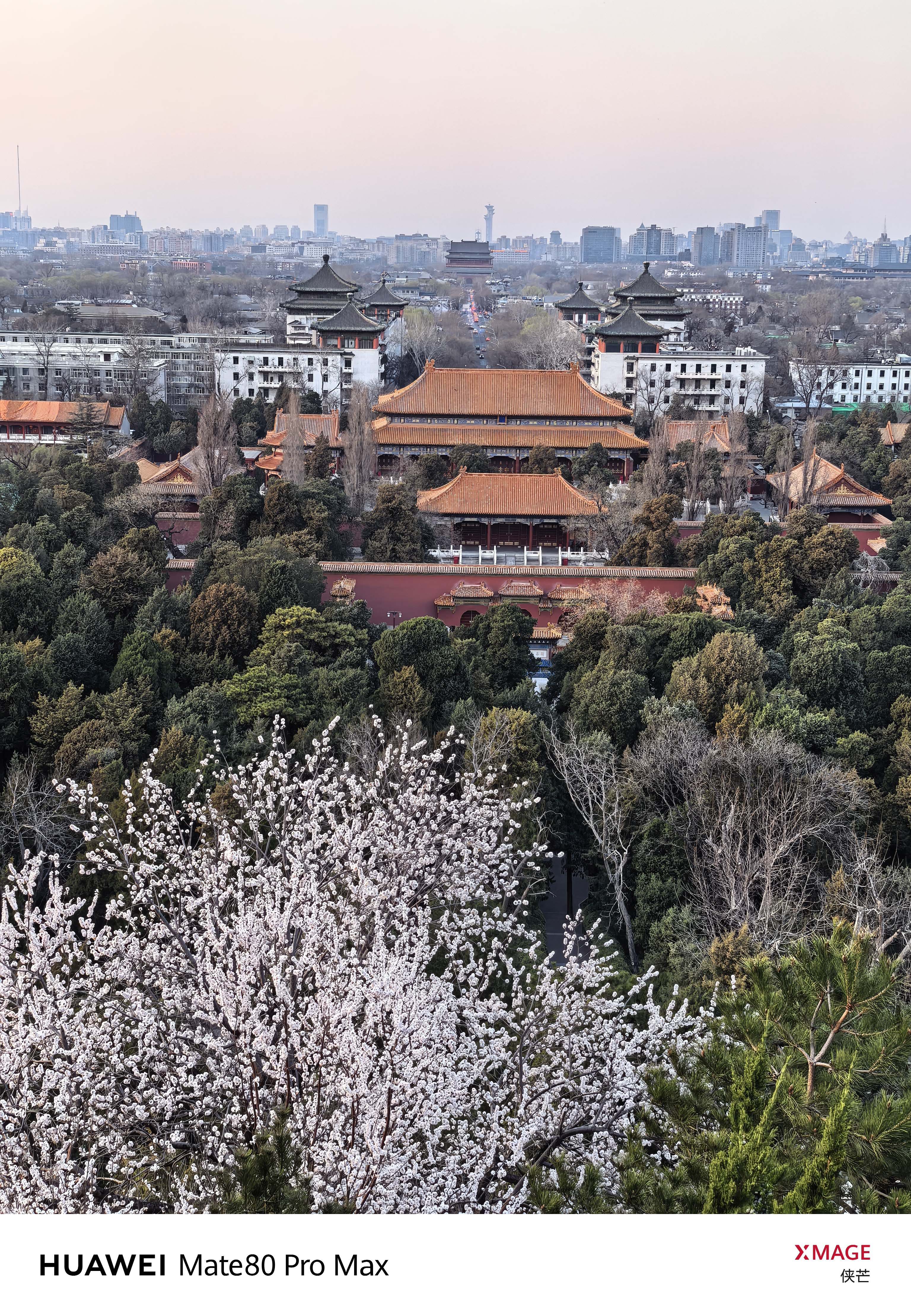 景山春早 万春花开 琼枝缀雪,檐角衔春。 登万春亭,揽半城烟霞。