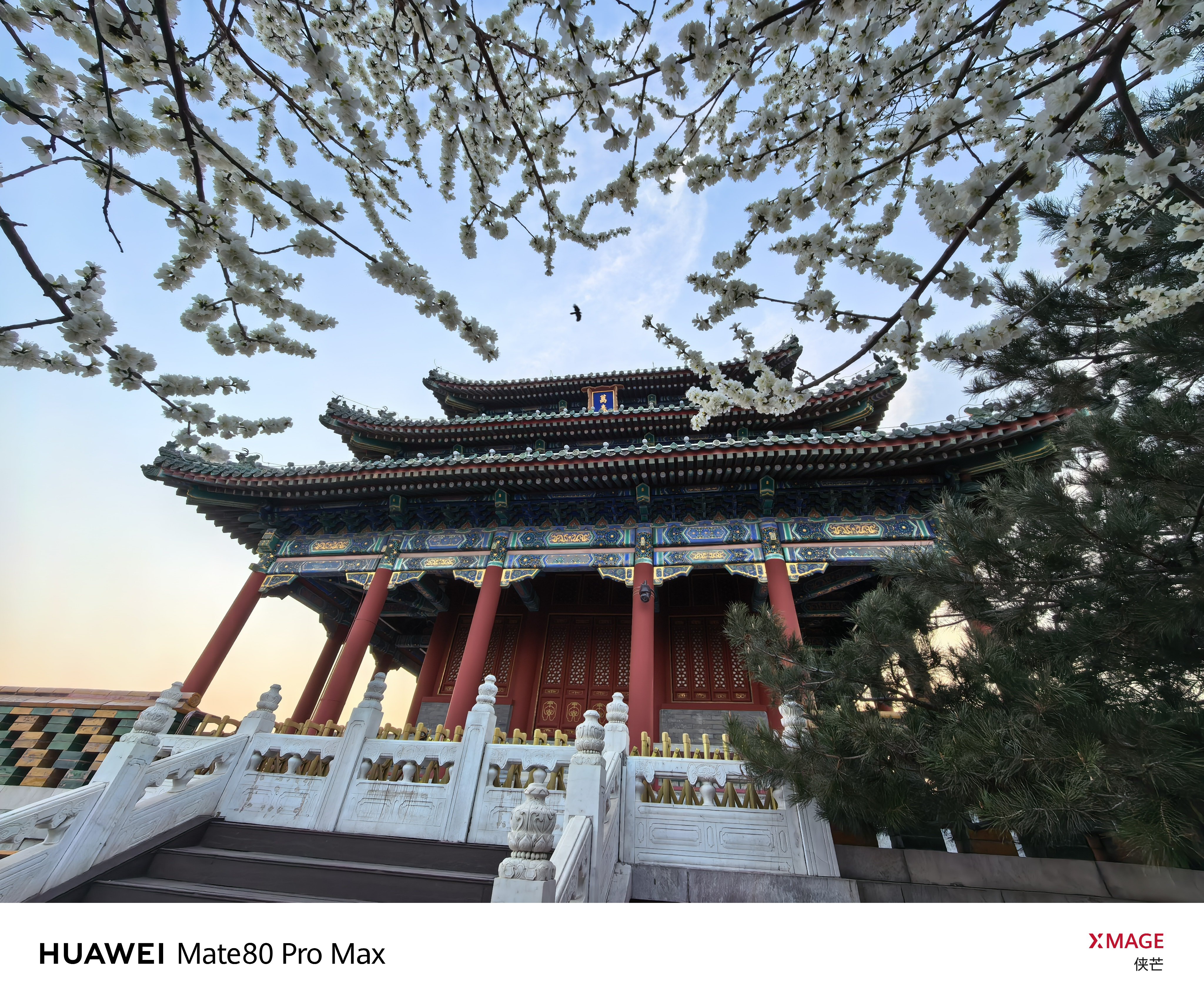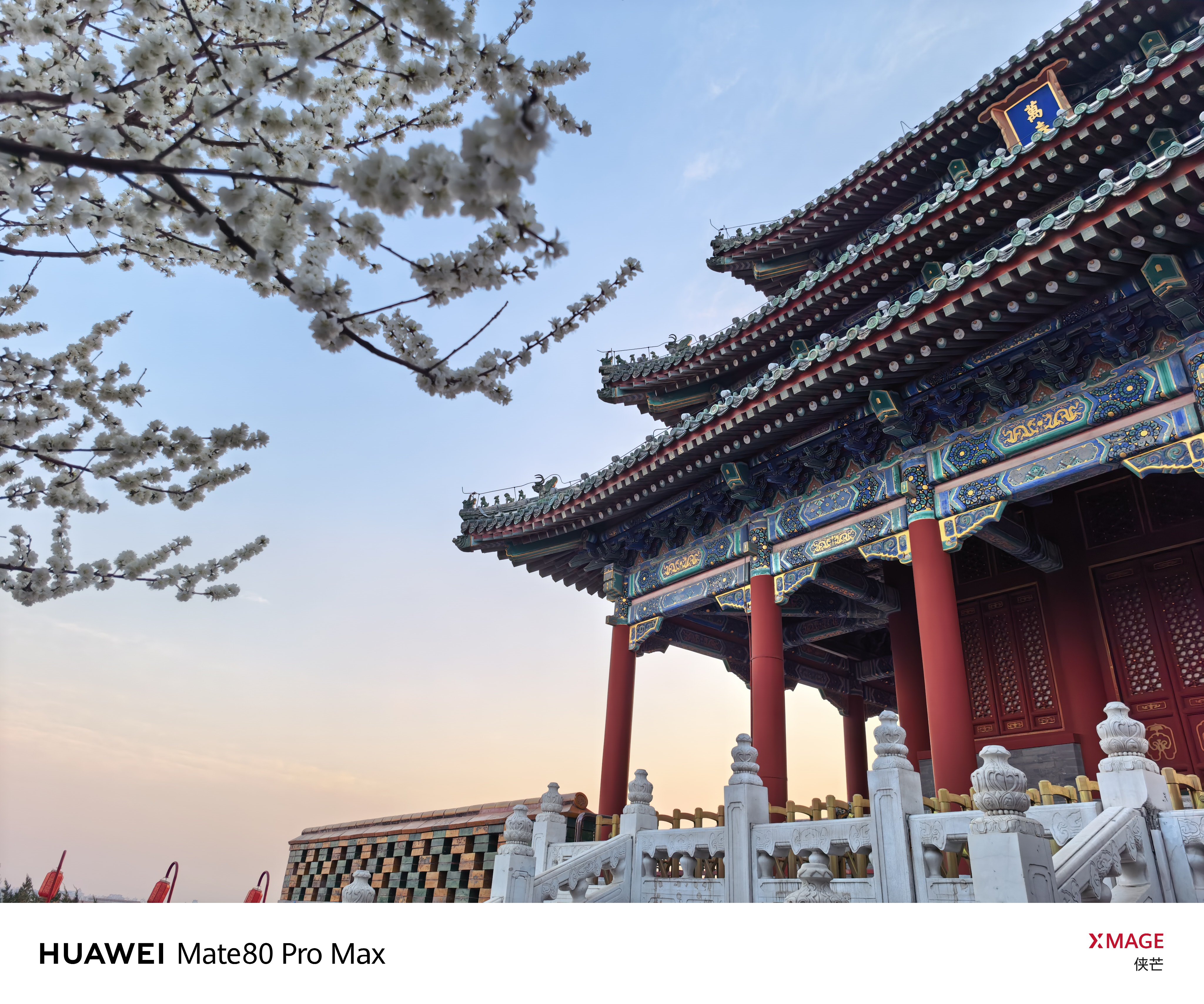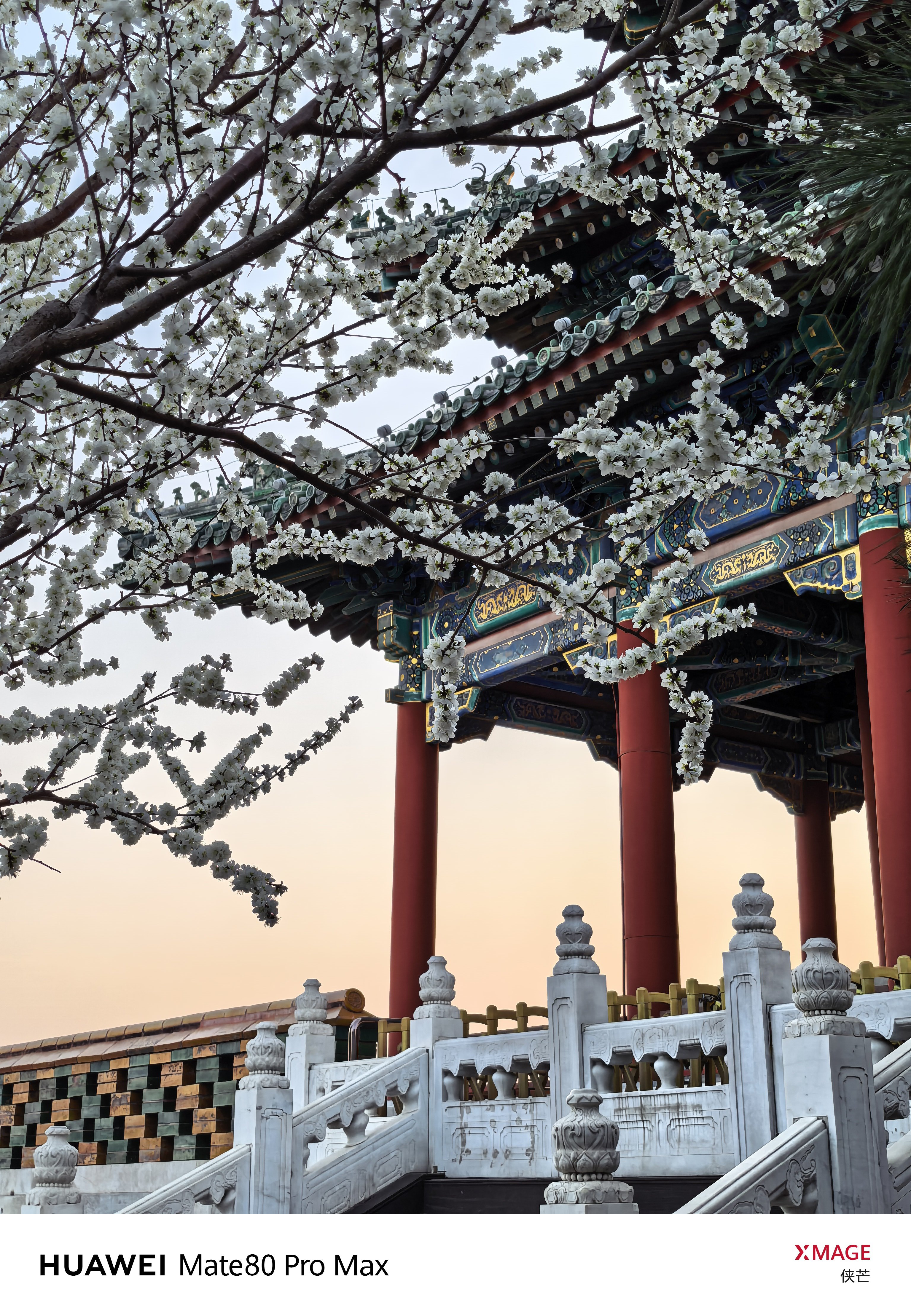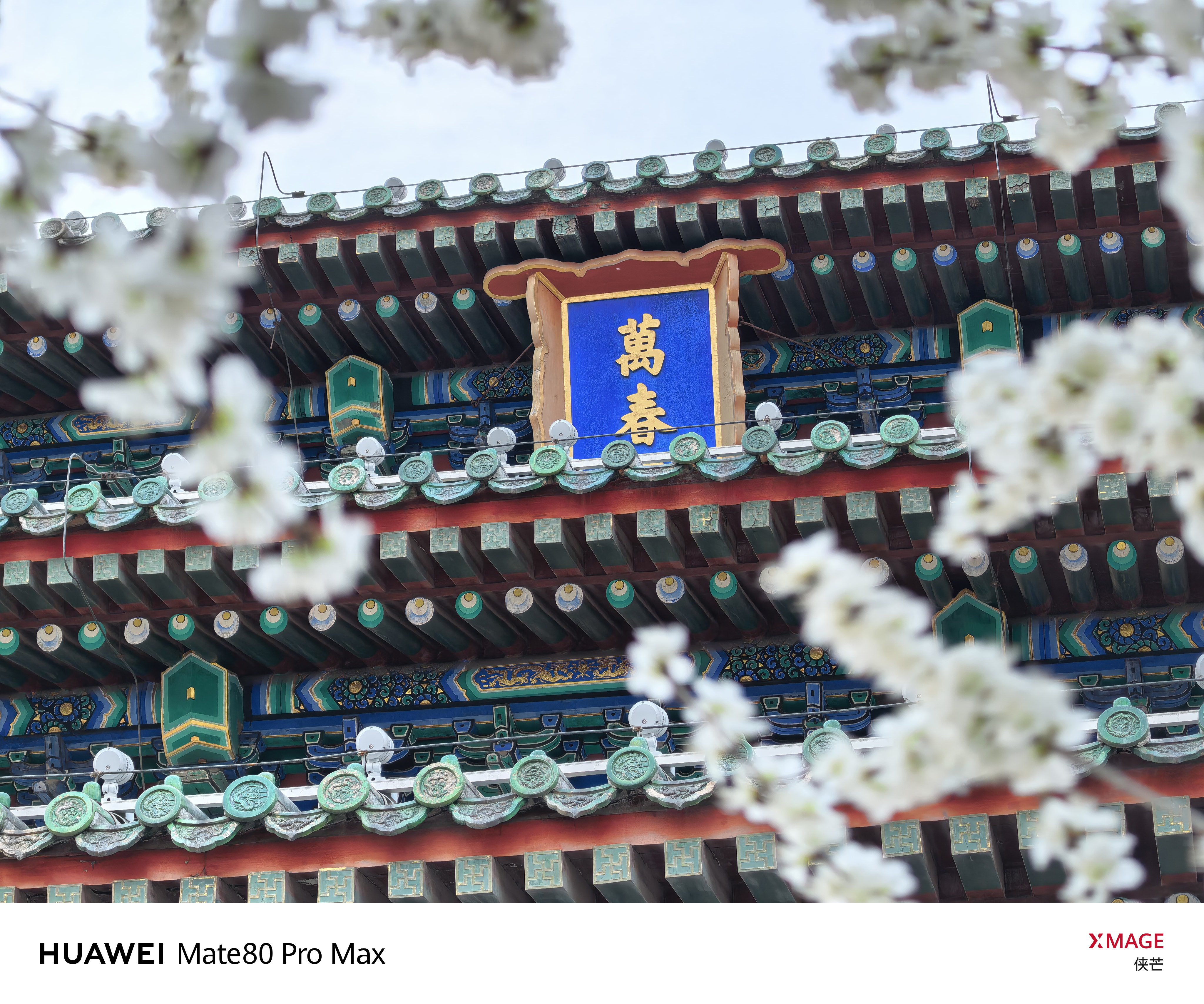 景山春早 万春花开 琼枝缀雪,檐角衔春。 登万春亭,揽半城烟霞。