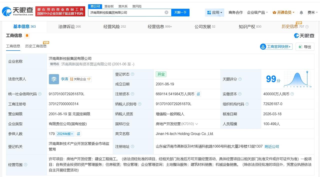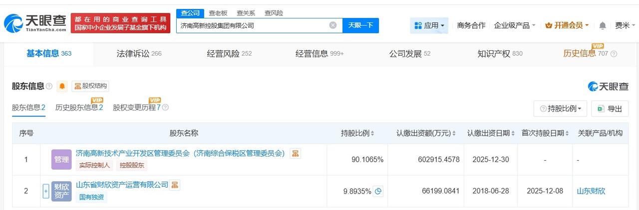 济南高新控股集团增资至66.9亿 增幅约67% 天眼查App显示,近日,济南高新控股集团有限公司发生工商变更,注册资本由40亿人民币增至约66.9亿人民币,增幅约67%。 济南高新控股集团有限公司成立于2001年6月,法定代表人为李涛,经营范围包括房地产开发经营、建设工程施工、自有资金投资的资产管理服务等。股东信息显示,该公司由济南高新技术产业开发区管理委员会(济南综合保税区管理委员会)、山东省财欣资产运营有限公司共同持股。 天眼查信息: