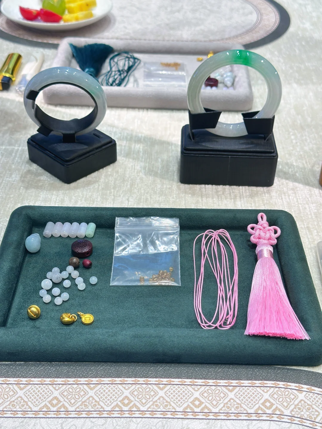 原以为穿珠子能有多难,实操起来才发现,翡翠珠子的孔径小得离谱,两根线怎么都穿不进去,折腾半天急得我满头大汗😤