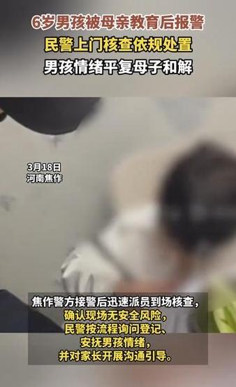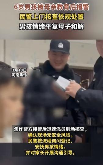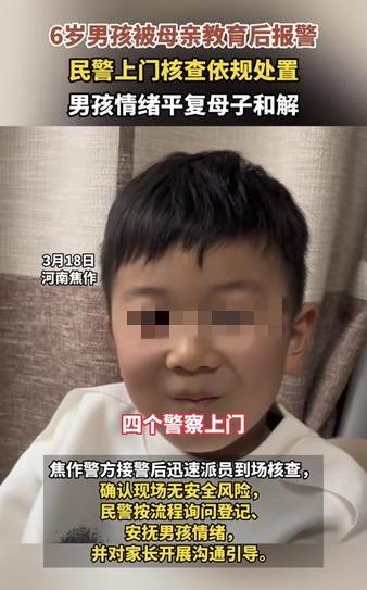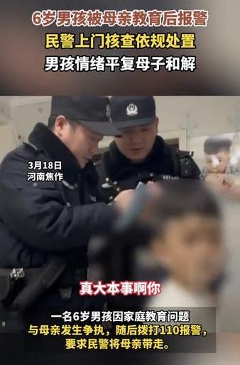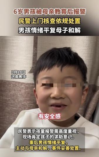 万万没有想到,河南,一名6岁男孩回家后,因先骑车还是先写作业,和妈妈发生了争执,之后孩子不听话便被妈妈一顿爱的教育。孩子被收拾后也是满心委屈,但让妈妈没有想到的是,孩子趁妈妈不注意,竟直接回屋反锁房门后,拨打了110报警,希望警察叔叔上门把妈妈抓走。而民警同志接到报警后,迅速上门核查情况。 视频可见,民警上门了解事情经过后,也是全程憋笑的给孩子按照流程处置。不过民警在给孩子做登记时,孩子虽然委屈,但他却能清晰的报出了自家地址和他的姓名,连出生年月也清楚记得,只差身份证没记住了。反观一旁的妈妈见警察同志上门了,也是一脸无奈的配合调查。 事情搞清楚后,妈妈也觉得让警察同志为这点小事跑一趟怪不好意思的,并对民警同志抱歉到,就觉得孩子这样报警是在浪费警力了。 但民警同志则回应妈妈道,这不是浪费警力,特别是小孩子报警必须引起重视,因孩子判断能力有限,必须现场确认是否有真实风险。 之后民警安抚好孩子情绪,妈妈也主动和孩子和解后,他们便离开孩子家。而孩子自己安静了十分钟后,也主动吃饭并按要求完成了作业。 事后妈妈回应,他们平时就教孩子遇事要找警察叔叔,并告诉孩子如何拨打急救电话,结果没想到孩子第一次报警,要抓的人居然是他亲妈!不过孩子能有如此安全意识,妈妈还是表示肯定的! 对此有网友就表示:我儿子也因为他妈妈打他报警了,当时我在外地,后来看了监控才知道阵势有多大,来了两拨警察,气的我老婆全程没敢多说话[捂脸] 还有网友表示:我家儿子被打后也报过警,警察上来问他咋滴啦?儿子说我不写作业我妈妈打我,我不洗澡她也揍我,警察又问,妈妈怎么打的你?儿子说妈妈打我屁股。警察来一句“你是我儿子我打的比你妈妈还要狠”,从此以后不报警了。就感觉警察这么回答孩子也很负责任,因为不能有理没理都找警察,不写作业不洗澡,该被教育[大笑] 也有网友表示:感觉现在的警察叔叔都很有责任心,我儿子10岁左右的时候,我发现他偷拿我的10块钱,他开始还不承认,我把他打一顿还不解气,直接把他带到派出所去了,结果警察叔叔非常好,不但很认真的给他讲道理,还给他讲利害关系,后来我儿子就再也没有出现过这种情况了,所以真心感谢警察同志。 不得不说,孩子报警的举动确实让人没想到,不过正如妈妈所说,知道有事找警察也是一件好事,最起码孩子遇到危险和困难后,知道怎么报警求助,这安全意识确实值得肯定。 但话说回来,民警同志虽然在做登记时全程憋笑,但为了孩子出警,还认真的记录,没有因为是妈妈打孩子就糊弄孩子,而是给足了孩子的尊重。就凭这认真负责,为人民着想的态度,也得给几位民警同志点赞!总之,老百姓有你们的守护,心里那叫一个踏实!
