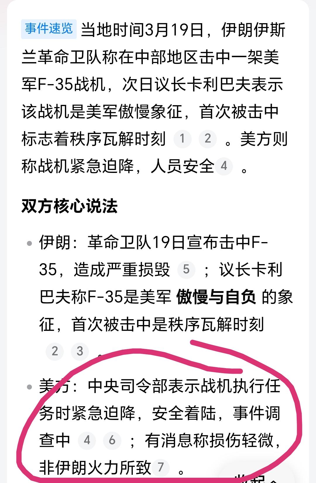 假的,都是假的![奸笑] 伊朗怎么可能击中隐形战机F35呢? 这叫机械故障,非伊朗火力所致! 再说一次,非伊朗火力所致![偷笑] 最近中东天空看到很多流星雨,是不是有什么东西落在了伊朗的沙漠了?有些外星科技可以让他们捡起来就用。 如果是这样的话,那就有意思了[奸笑] 点右上角关注我我们一起去看这个魔幻的世界