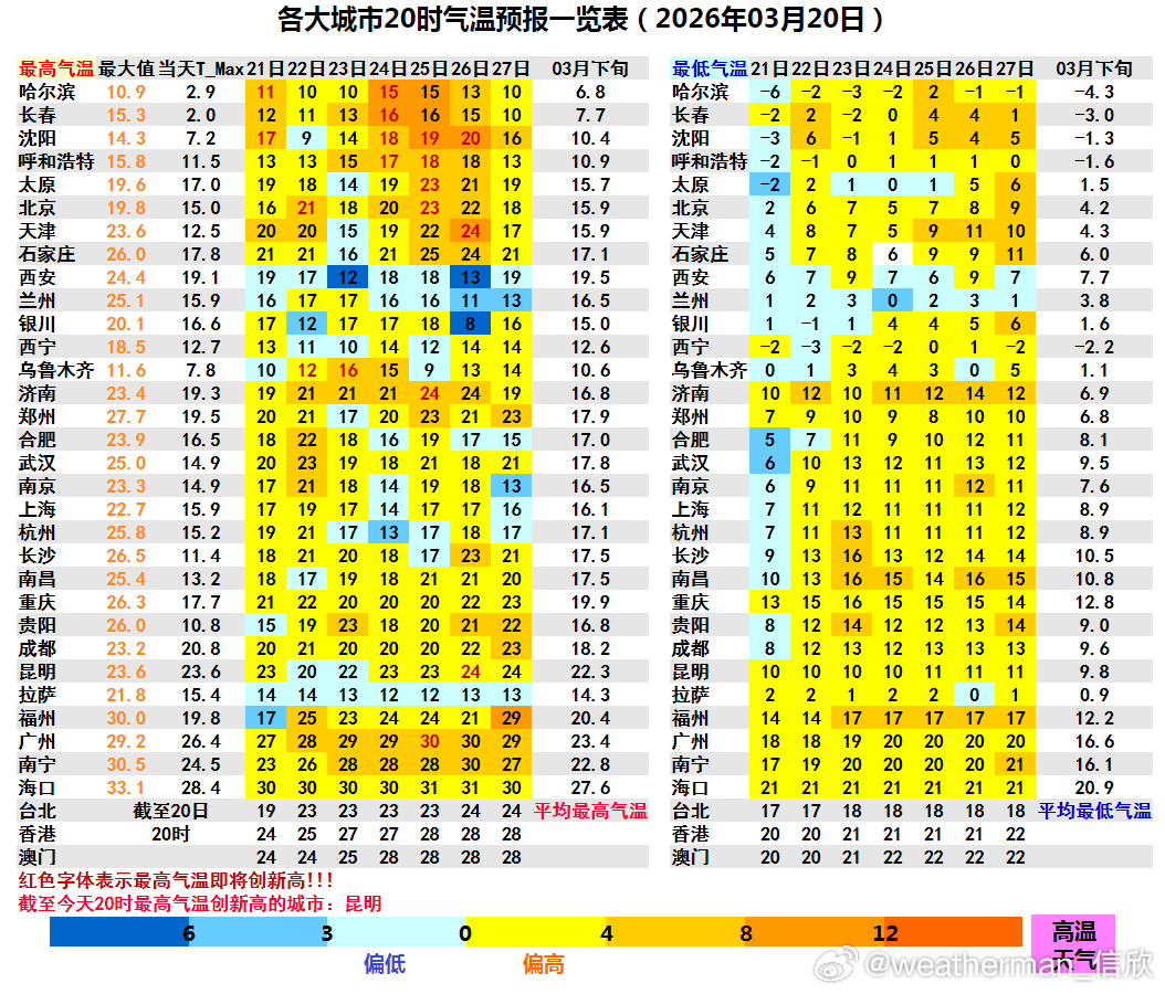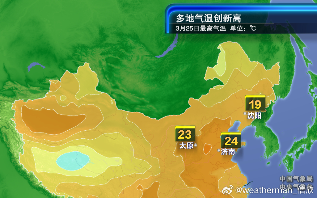 24-26日东北华北黄淮等地,还会一轮升温,不少城市会再次刷新今年以来气温的高点。比如:24日哈尔滨15℃、长春16℃、沈阳18℃;25日太原23℃、北京23℃、济南24℃,太原将是今年首次上20℃;26日沈阳20℃、天津24℃,沈阳也将是今年首次上20℃。另外广州25日报出30℃,也可能创新高。