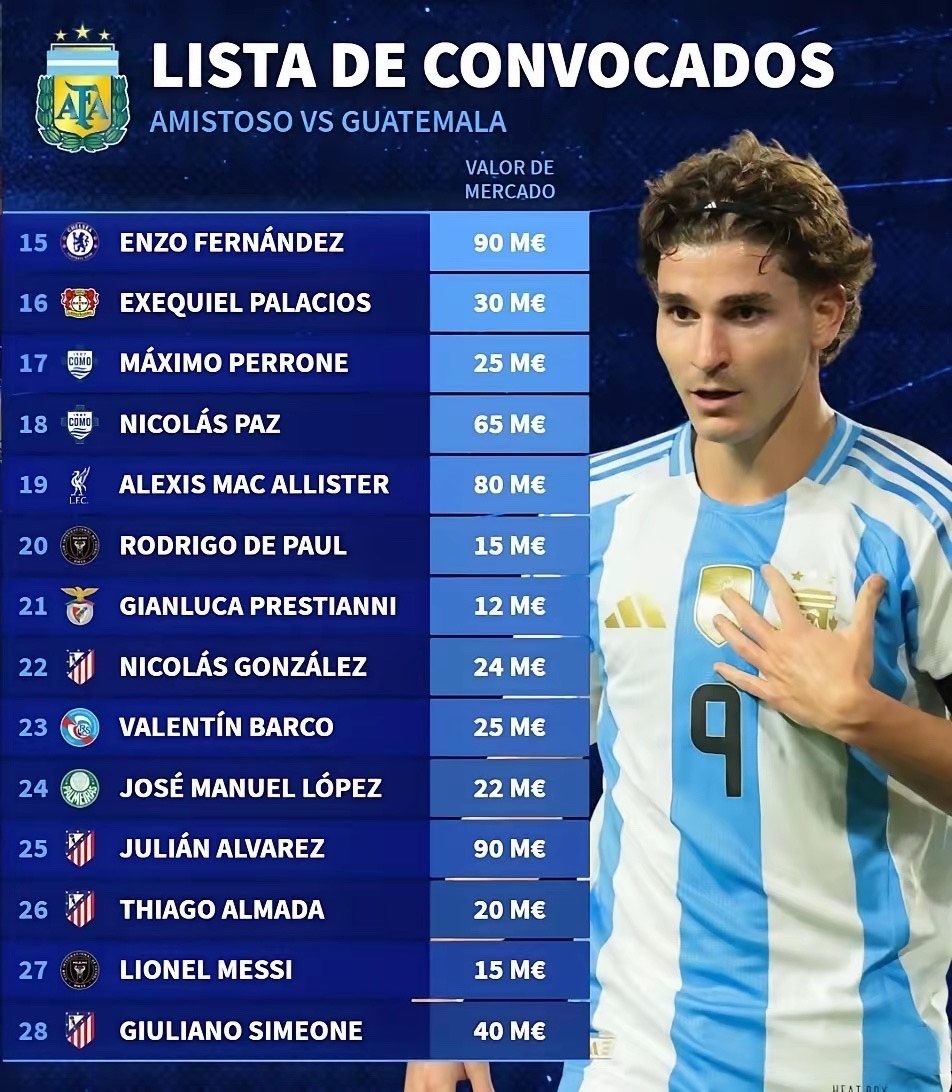 德转最新公布阿根廷球员身价前十排行榜:1. 阿尔瓦雷斯,9000万欧元,马竞2.