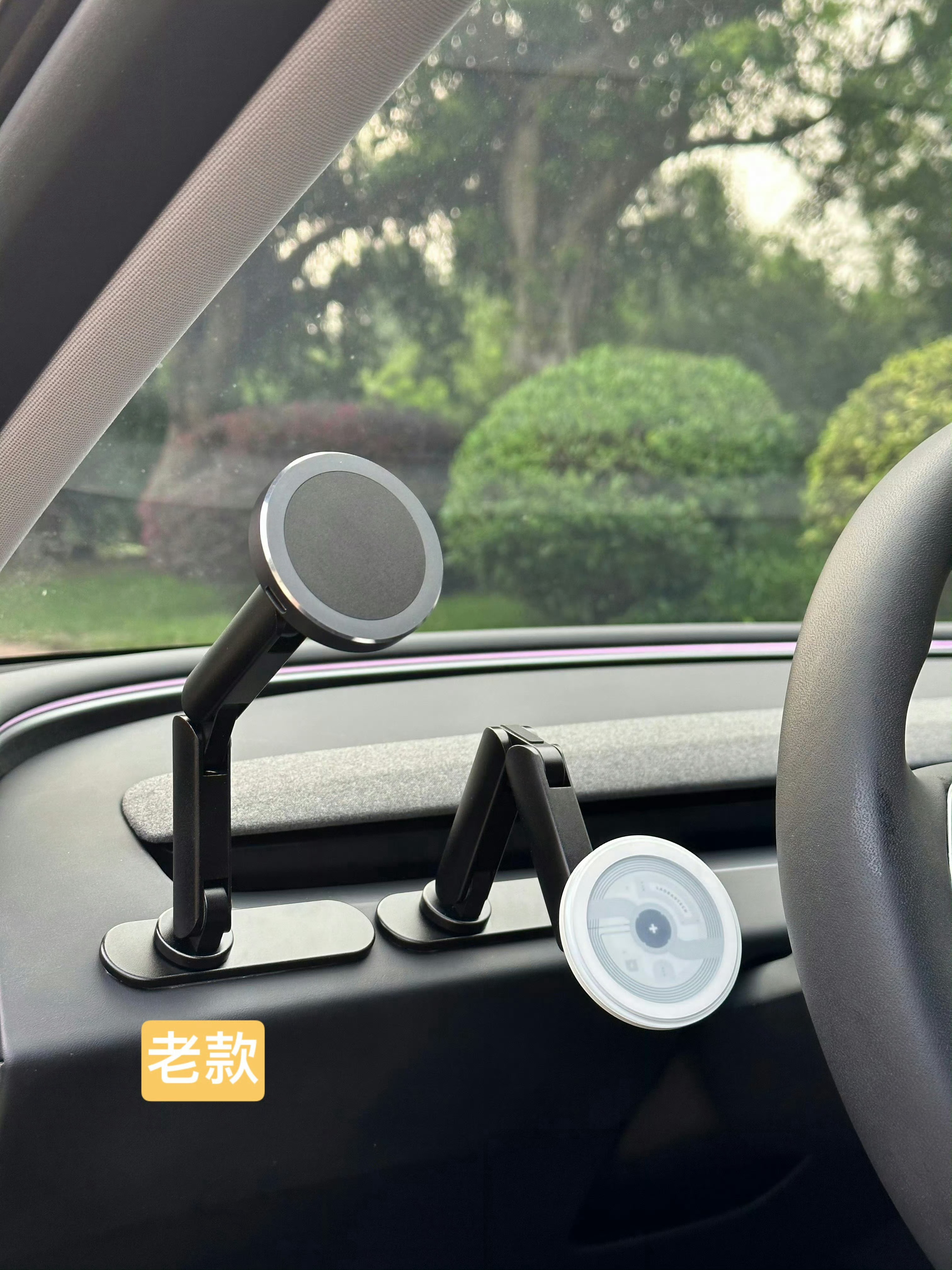 弄完贴到车上的时候,大家注意在静置过程把支架往后折叠收纳,这样可以确保更好的粘贴效果。