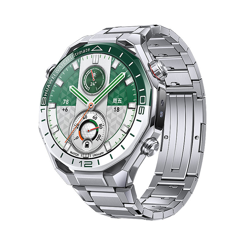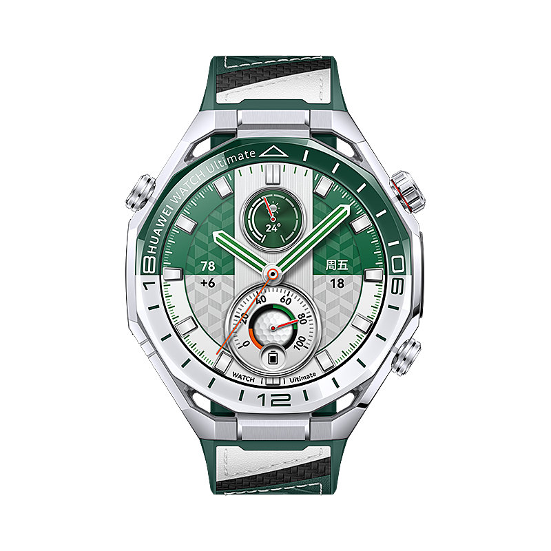华为 WATCH Ultimate 2 非凡探索手表“旷野绿”搭配绿白双色素皮复合表带